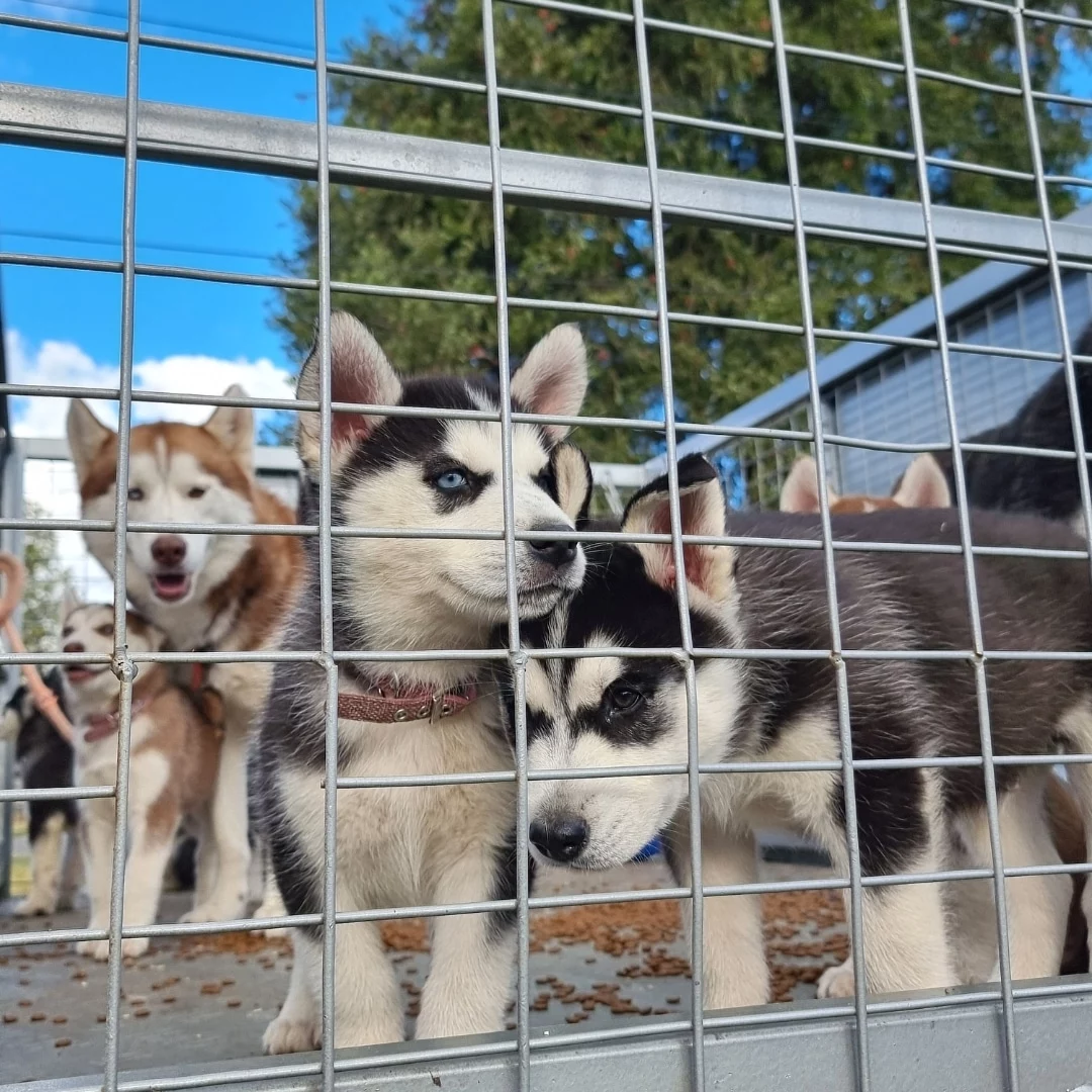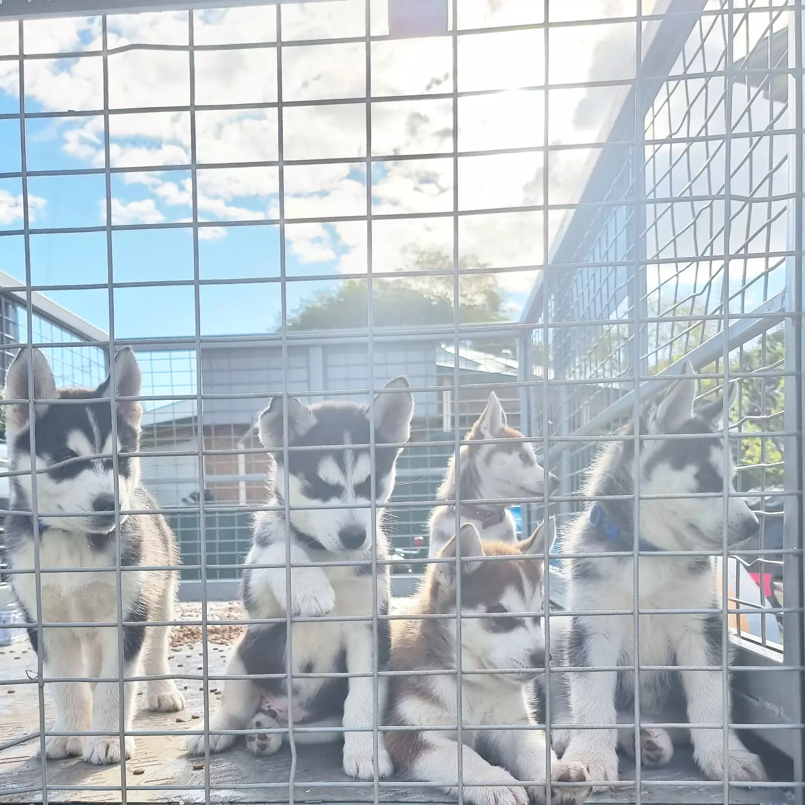 Dogs have access to: warm bedding, water at all times, ample space to exercise, natural light