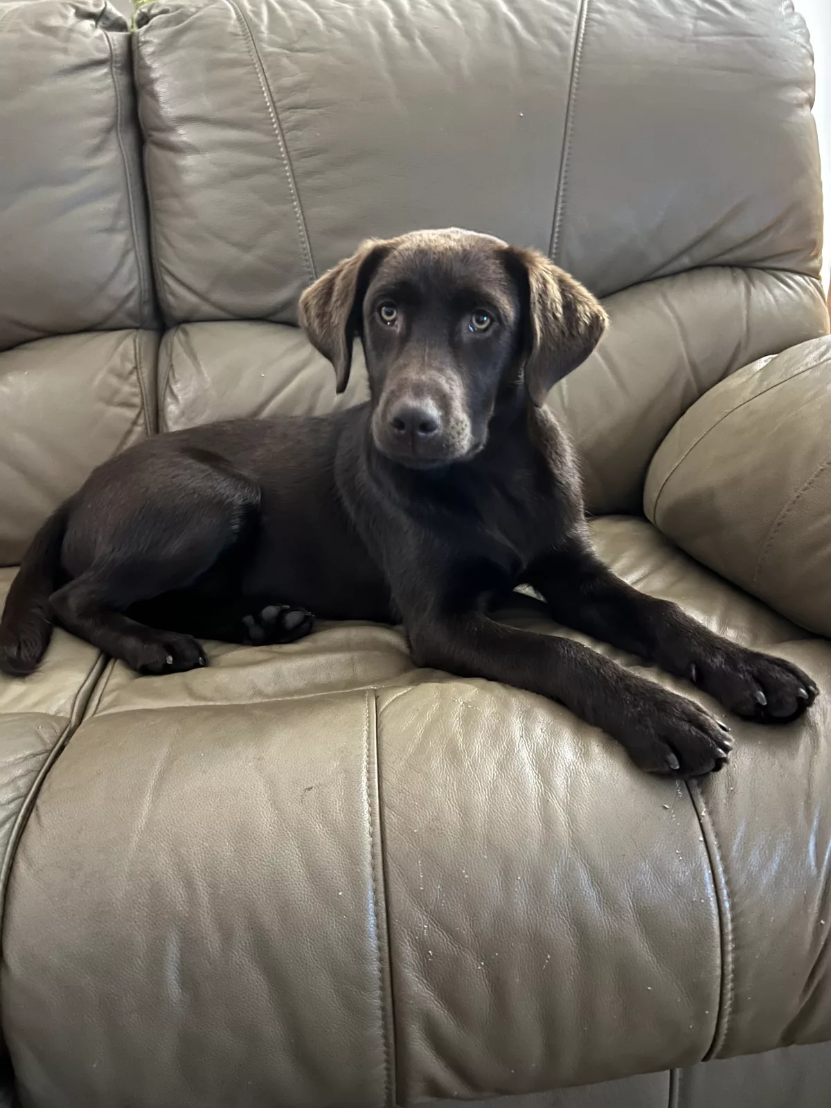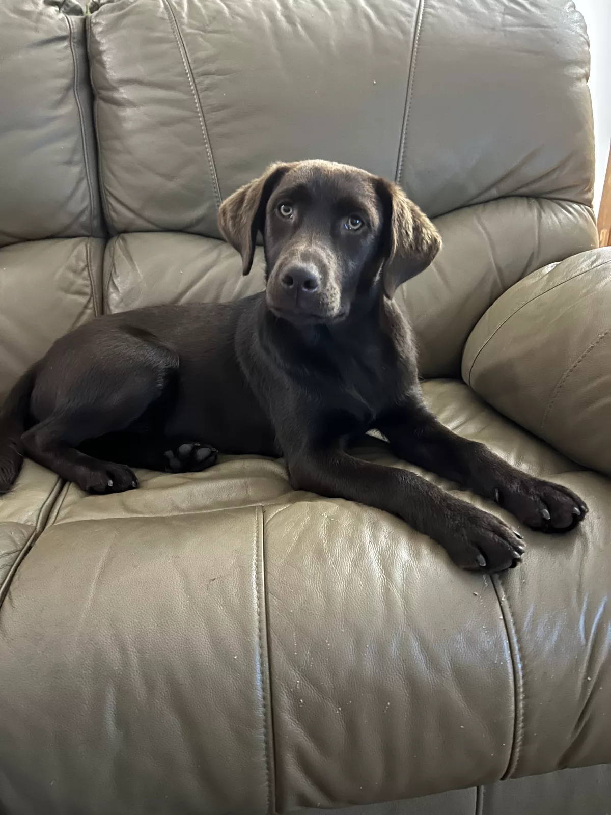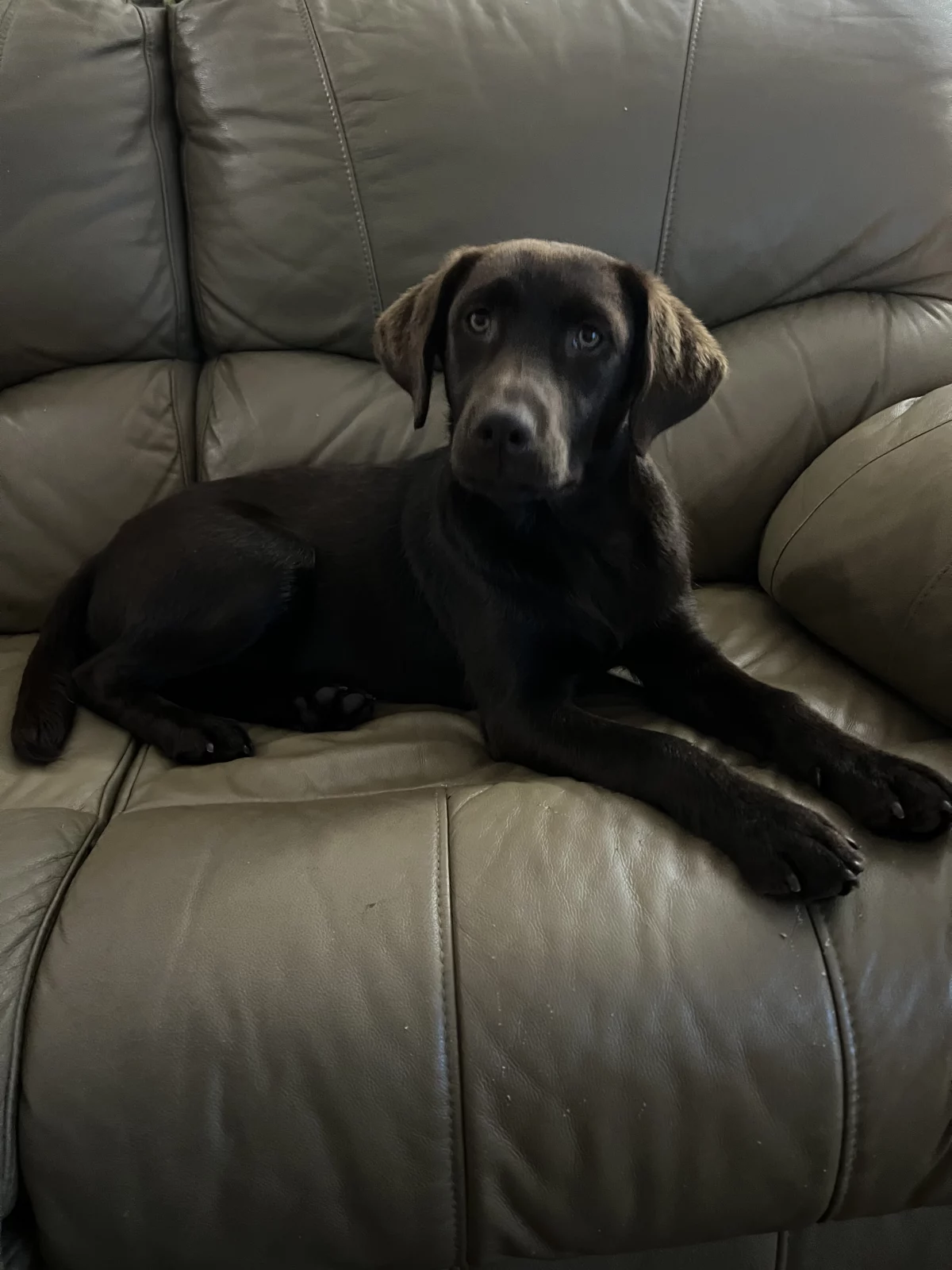 Selling my female choc lab becaue we have to move. She’s a very good girl, and i'm very sad to have to rehome her. She walks on a lead/harness great. She’s toilet trained as she’s an inside dog. She’s grown up with toddlers so she has a great temperament. She’s very timid, and gotten a lot better but when I first got her she was very timid and nervous. She does guard the yard aka barks at strangers, all bark no bite. Energetic, a walk a day usually keeps her under control. Loves toys, loves a cuddle. Will come with harness and lead. Bought her for $1200 selling for $850.