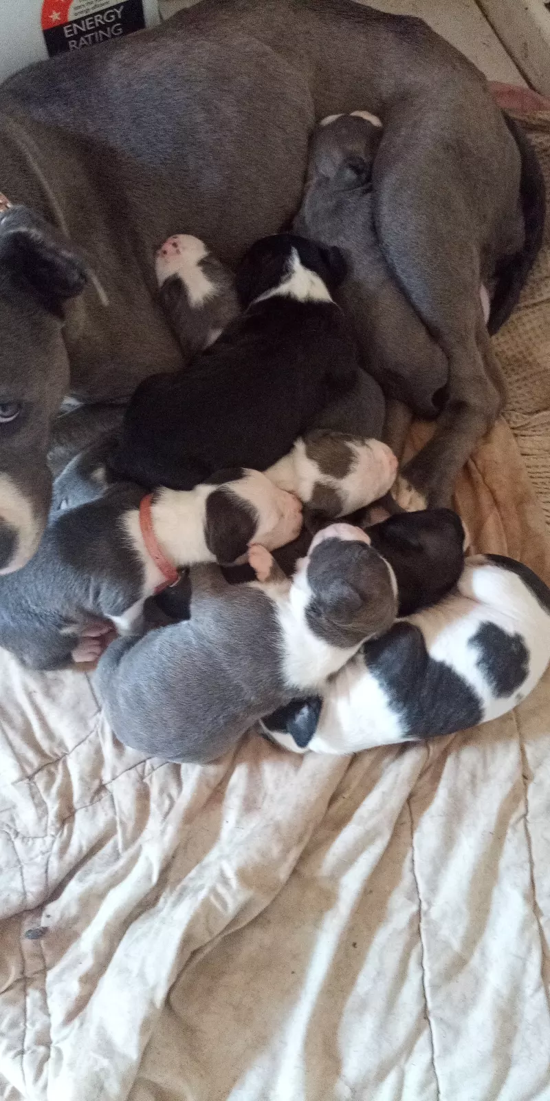 8 pure bred American Staffy puppies available soon — ready in 3 weeks!