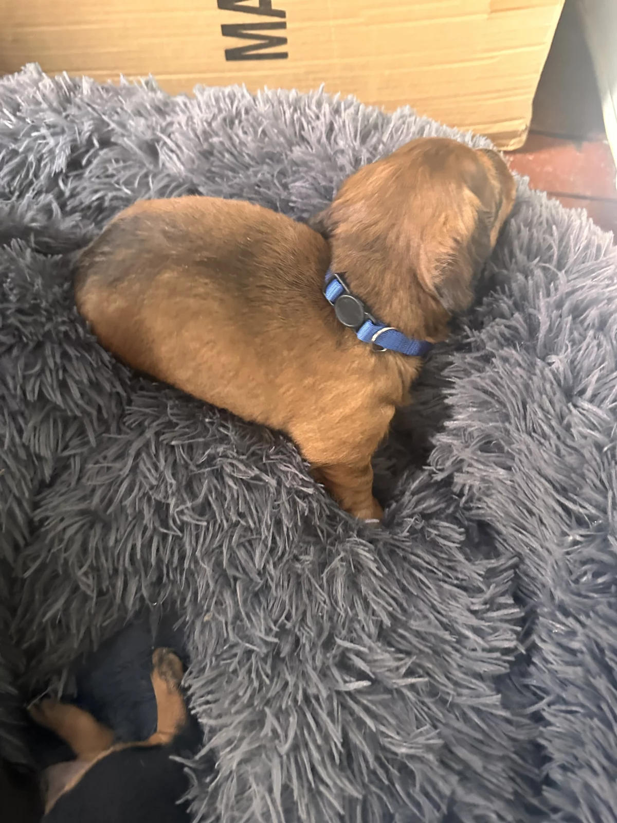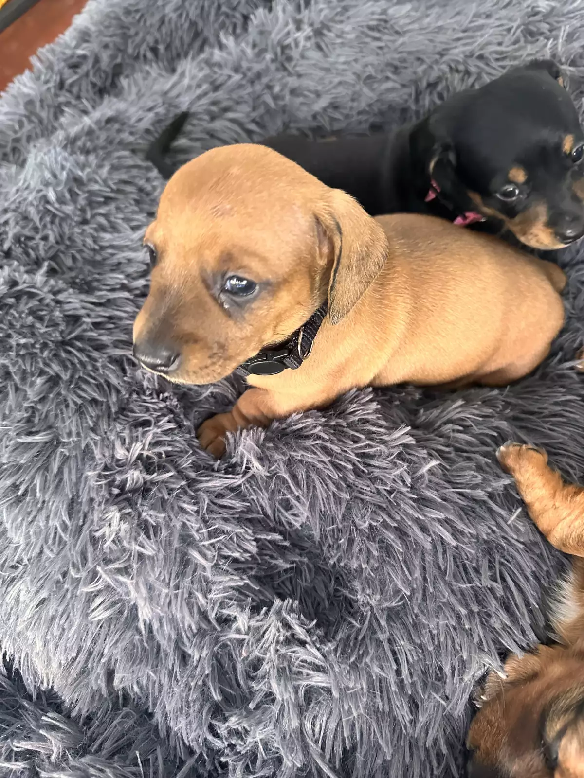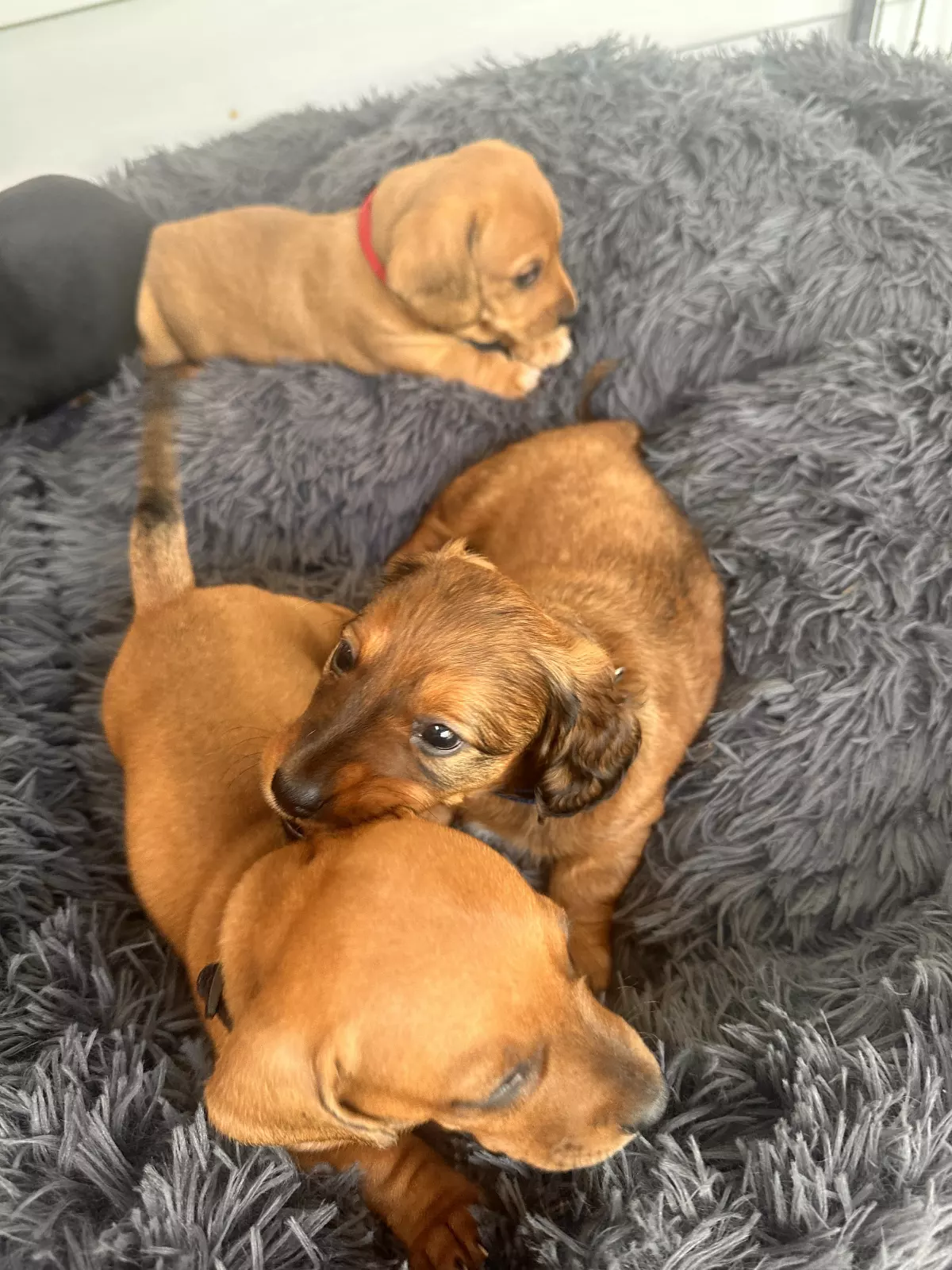 The mum, Dottie, is shorted haired and the dad, Dash, is a long haired Dachshund.