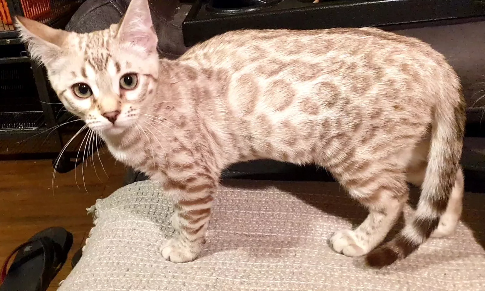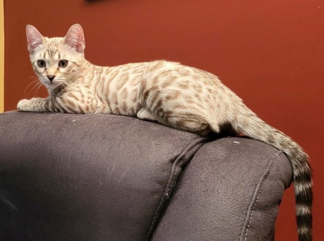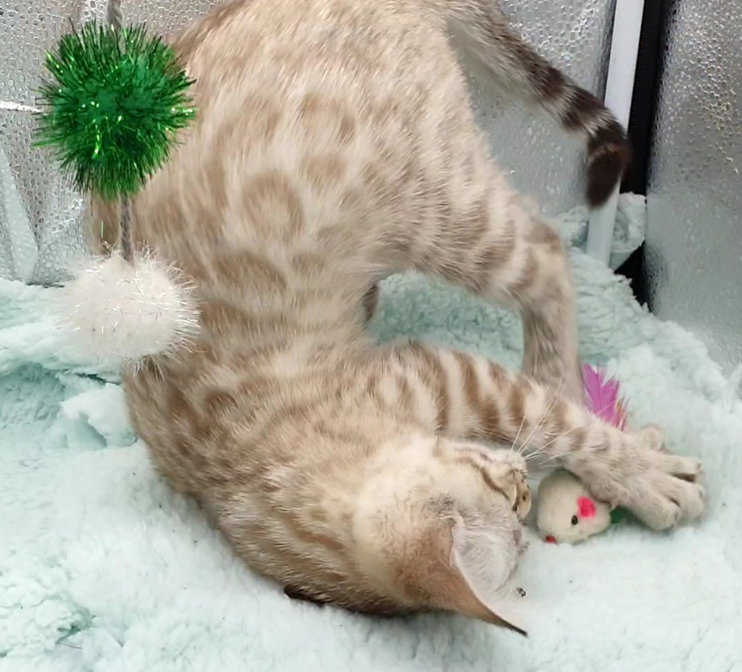 Be aware Bengals are a very highly intelligent, chatty breed with unlimited energy, all day antics and a show a dog like attachment to their human slaves. They are not your normal cats and I would recommend researching into them prior to purchase. They maybe reserved when they first encounter you, they need to feel safe and loved then will bond with you for life. They enjoy playing games and need lots of stimulation.