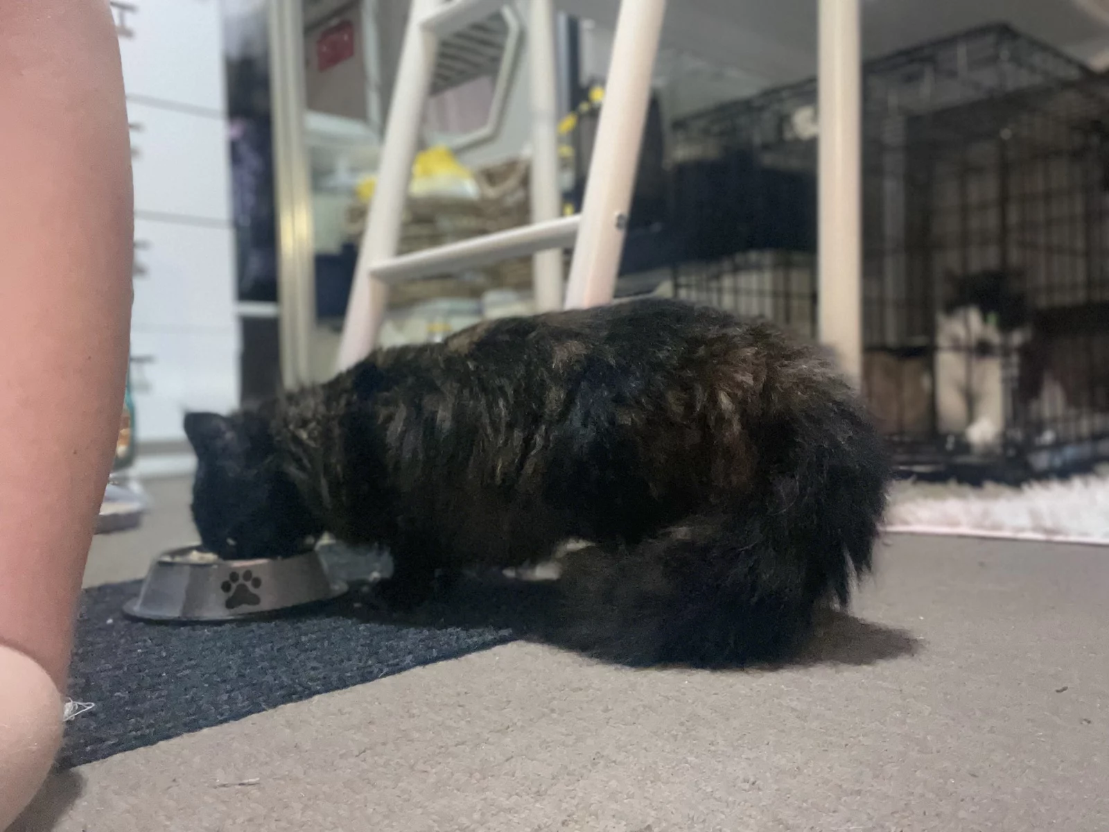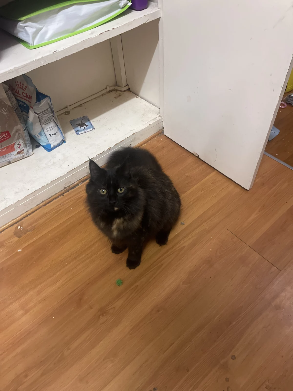 History: Molly started her life on the streets and remained in a large colony located in Salisbury Park until she was 6 months old. For over a month now she's been in care and adjusted to home life amazingly. Molly is litter trained, loves hiding in the clothes on the airer and would be the perfect companion to any human who has a little bit of patience. Molly will take a bit of time to adjust to a new environment but I assure you that she makes herself known once she settles in!