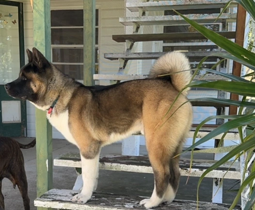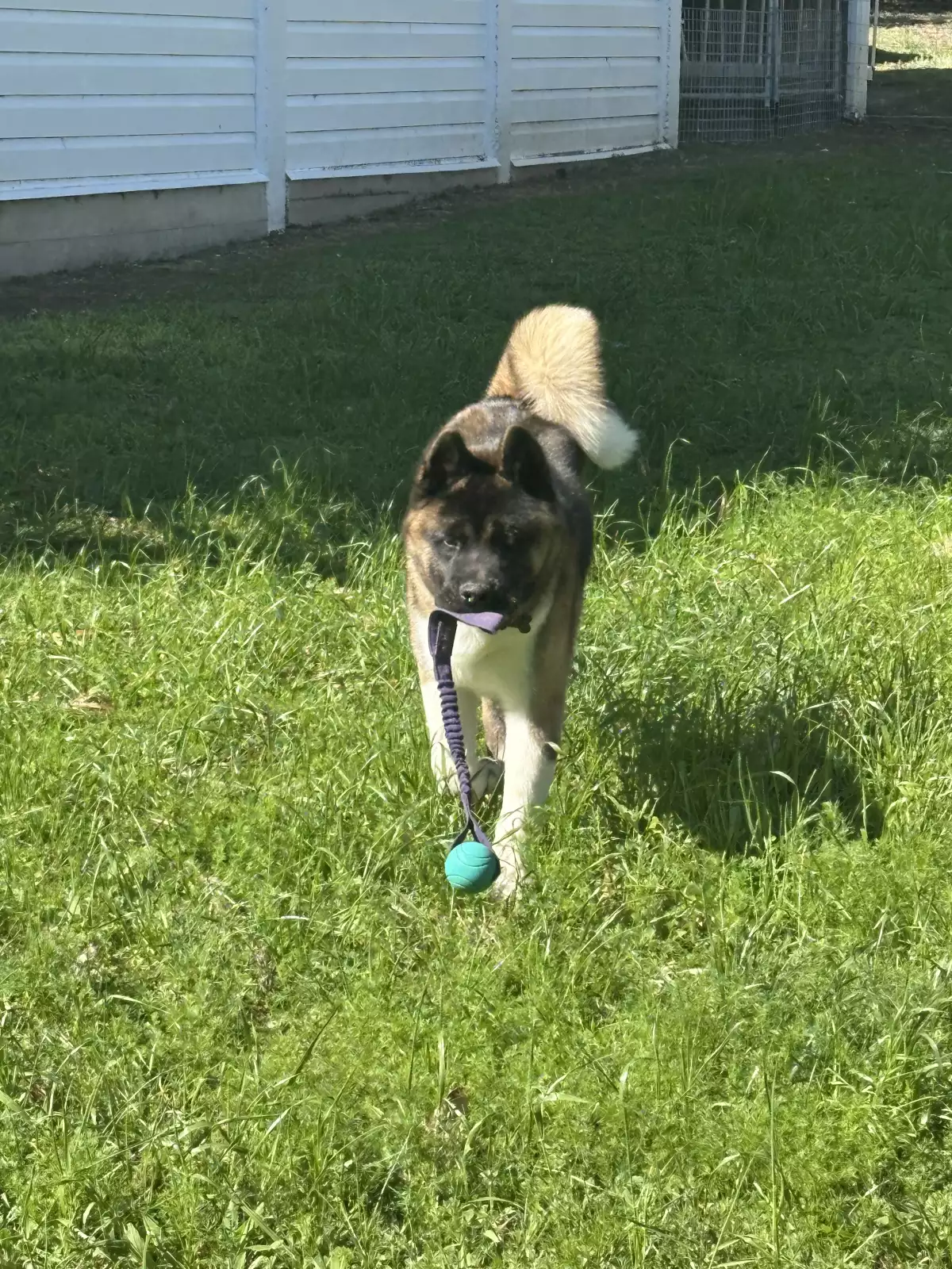 He has grown up with my older children and my other senior dog so he has never been alone. For that I would prefer he go to a family that not only has another dog for him to play with but that has experience and knowledge of the Akita breed.