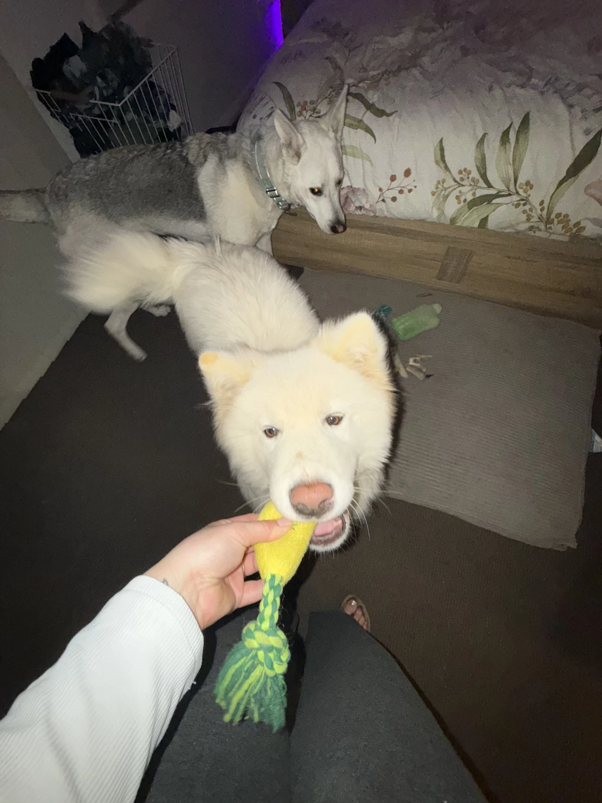 Not a crazy/messy dog Akitas like to keep themselves clean