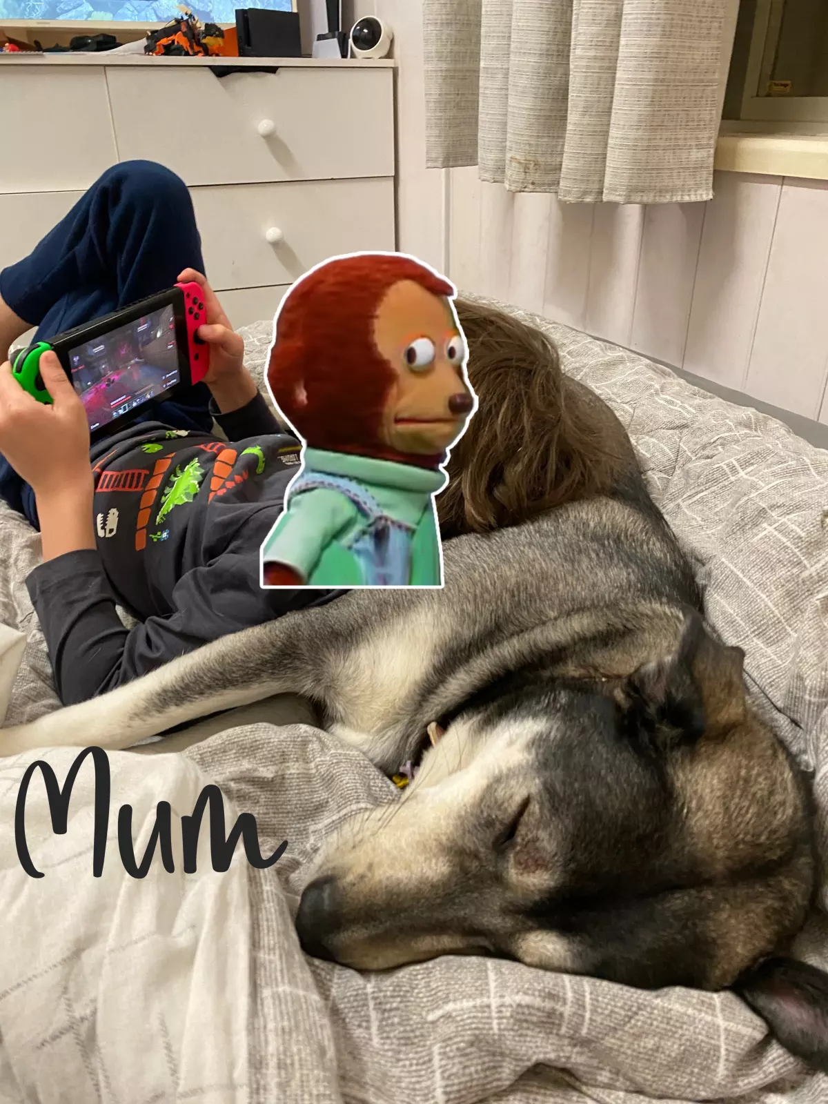 Mother is a Malamute/Labrador who is a big couch potato, and great with children.