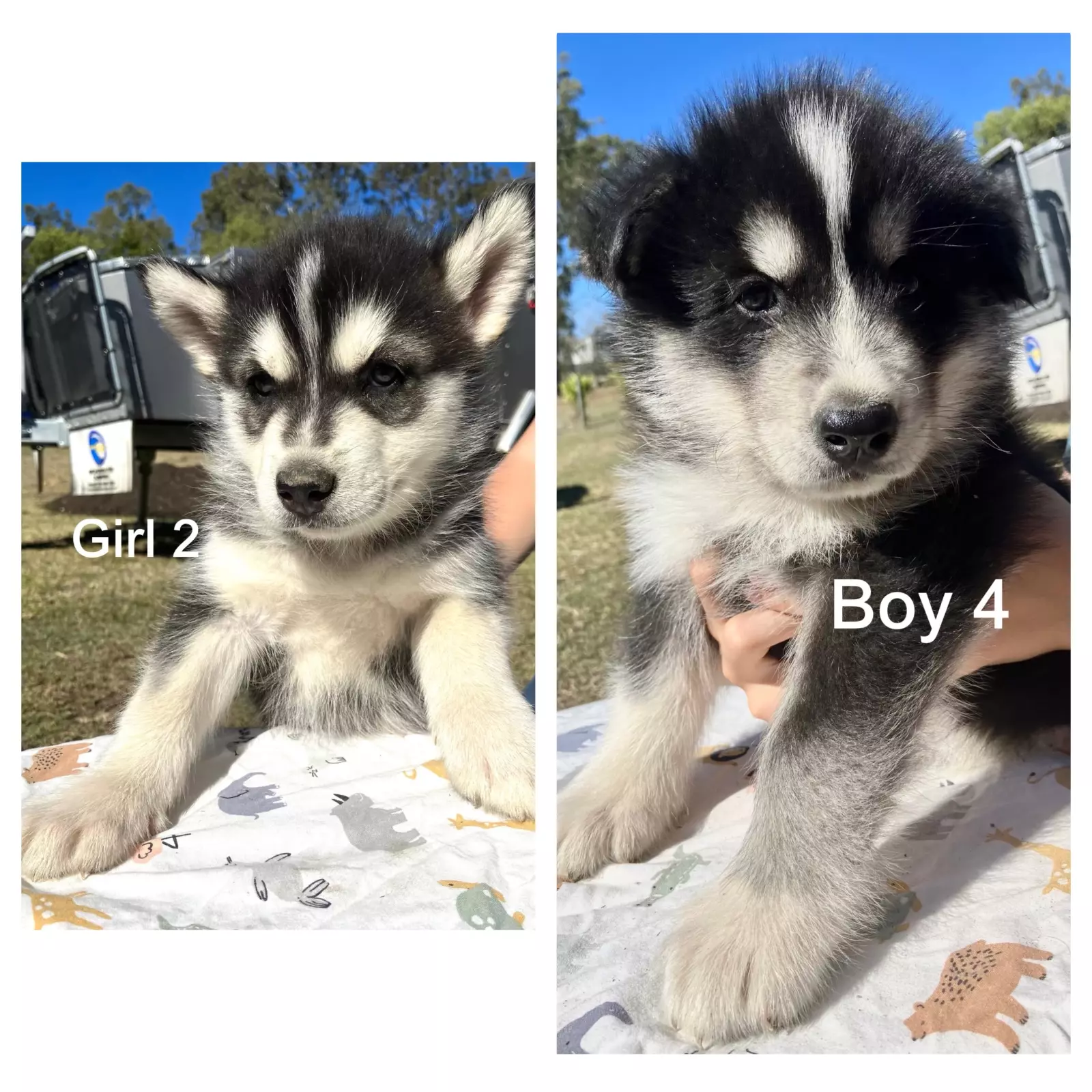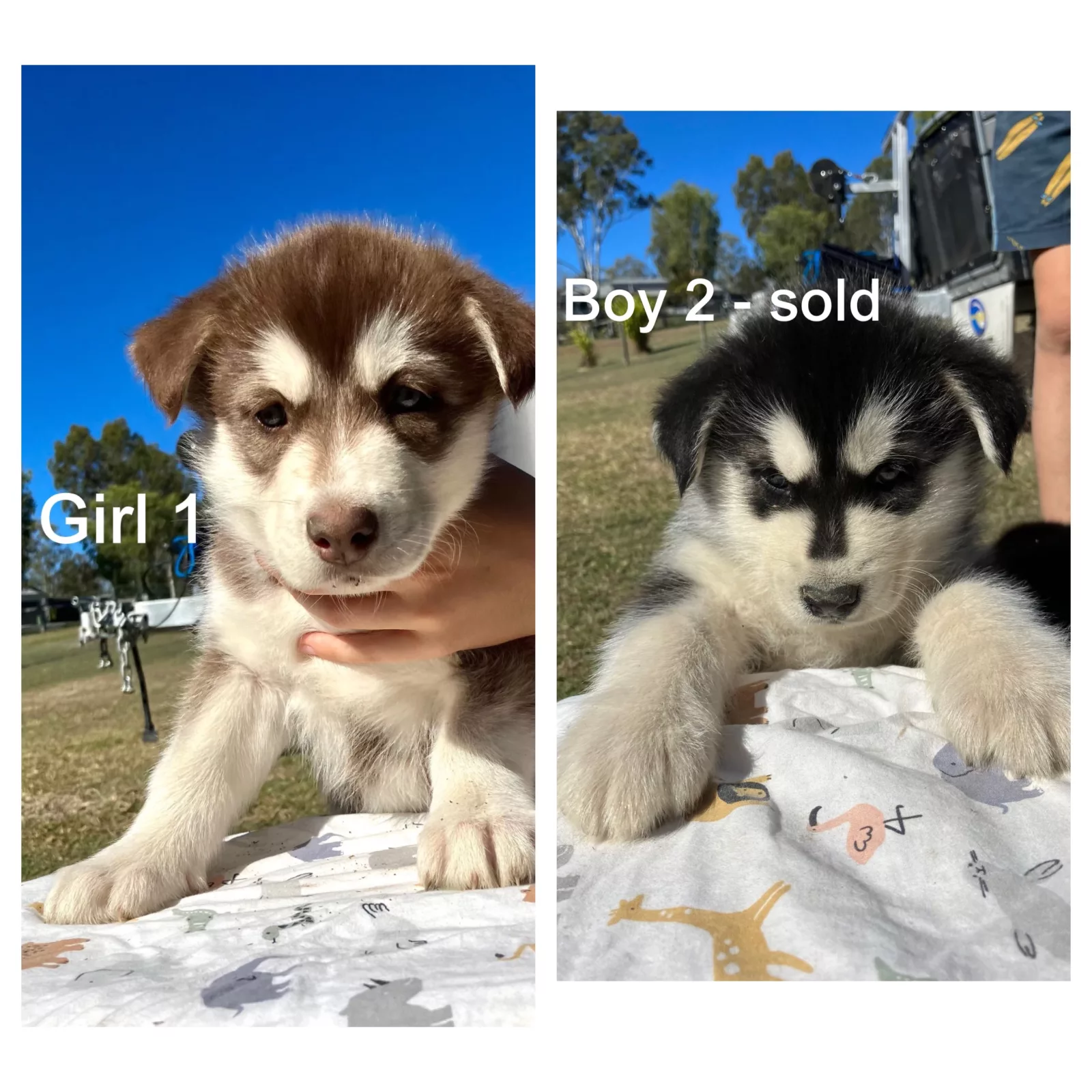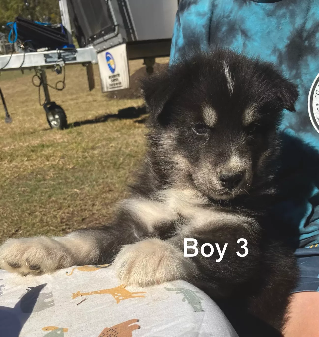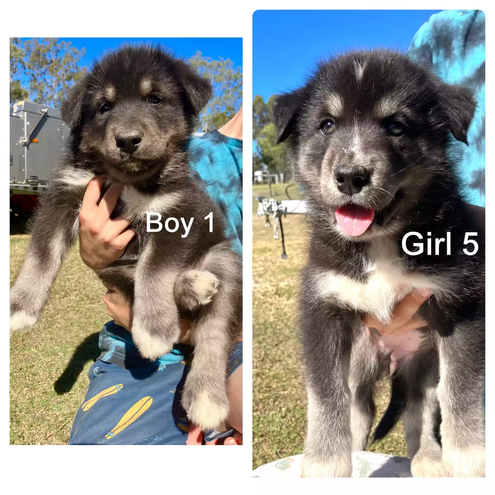 These beautiful pups have an incredible lineage, being primarily Alaskan Malamute with a dash of spirited Husky, promising magnificent, loyal, and loving companions! Born on May 26th, 2023, they will be perfectly ready to join their new families right on July 22nd, 2023. This mix is ideal for active homes looking for a devoted mate with stunning looks. Everything essential is sorted for their healthy start: they have been fully vaccinated, microchipped, and consistently wormed. Don't hesitate to reach out for more information on these gorgeous pups!