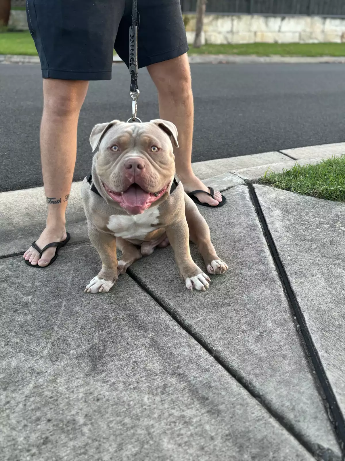 This two-year-old Pocket Bully is the perfect size—compact and muscular, making him easily manageable while still having that powerful American Bully look. Being fully grown, you can skip all the difficult puppy stages and welcome a dog with a proven, friendly, and loving temperament straight into your home. His rare lilac coat is stunning and sets him apart, offering a unique look combined with the breed's stable, affectionate disposition. The Pocket Bully size is ideal for those seeking the Bully traits without the massive bulk of the XL. He is an incredibly devoted companion ready to form a deep bond and provide years of loyal friendship to his next family. He is well-socialized and ready for a gentle, stable home environment.