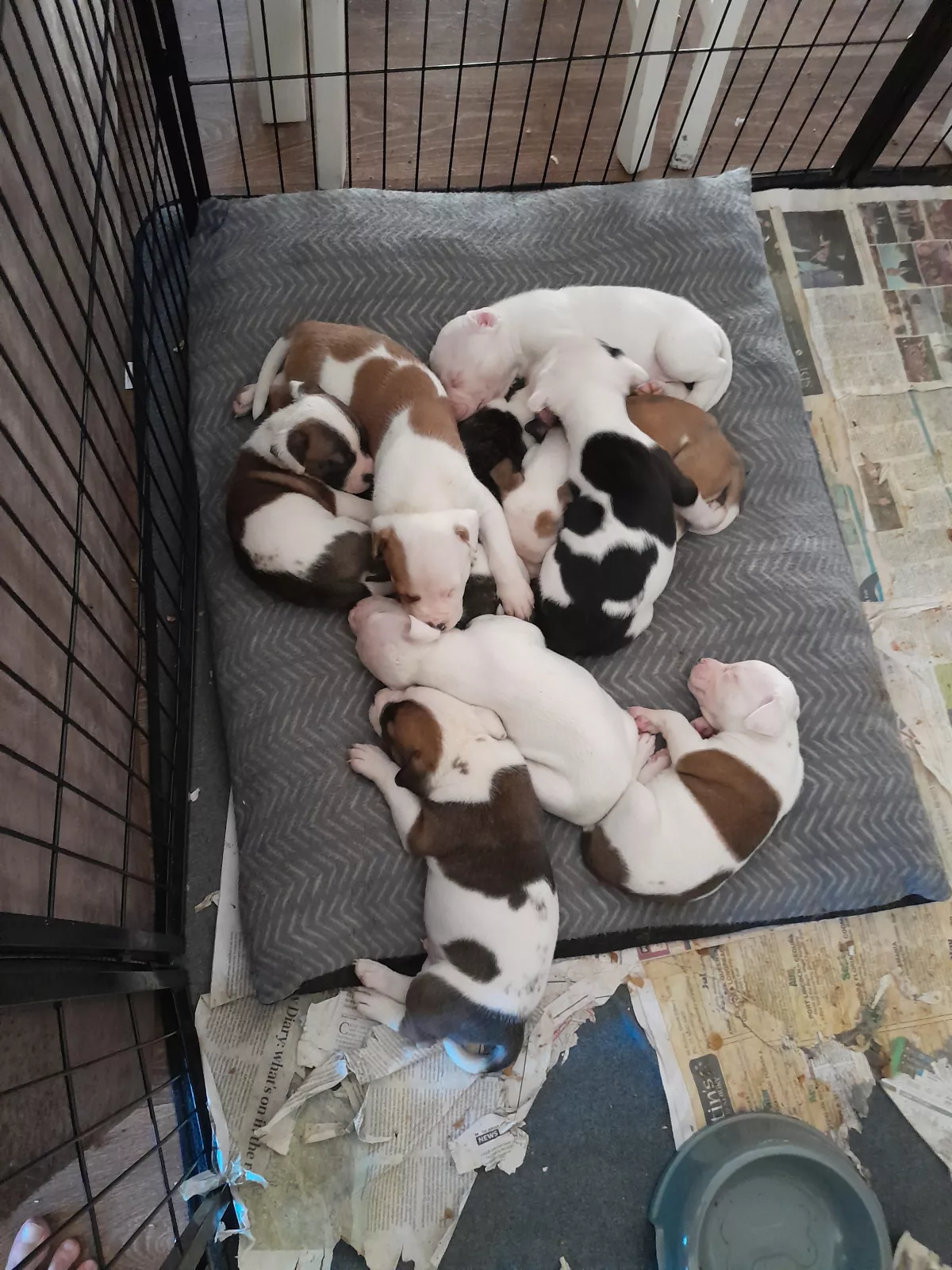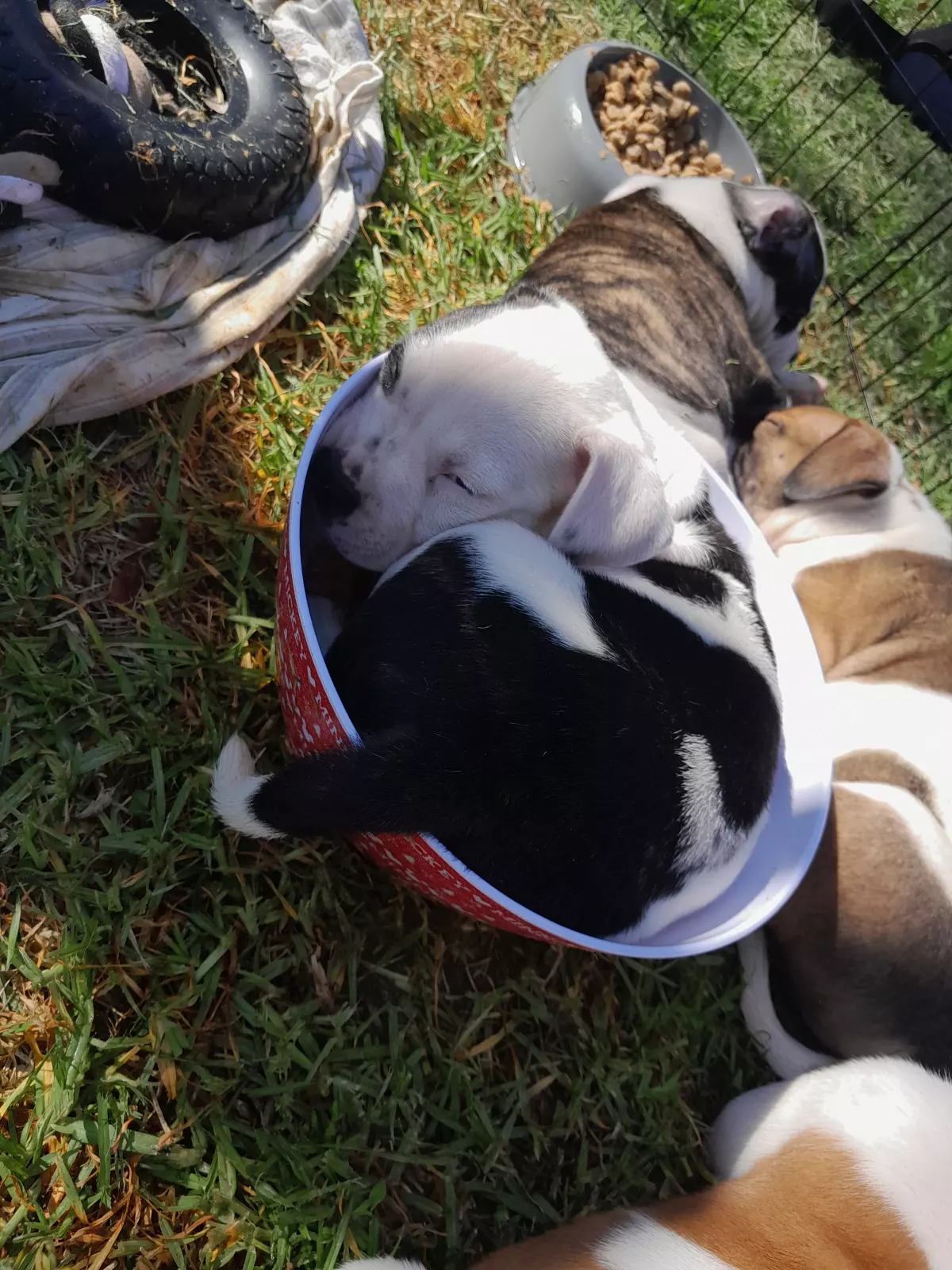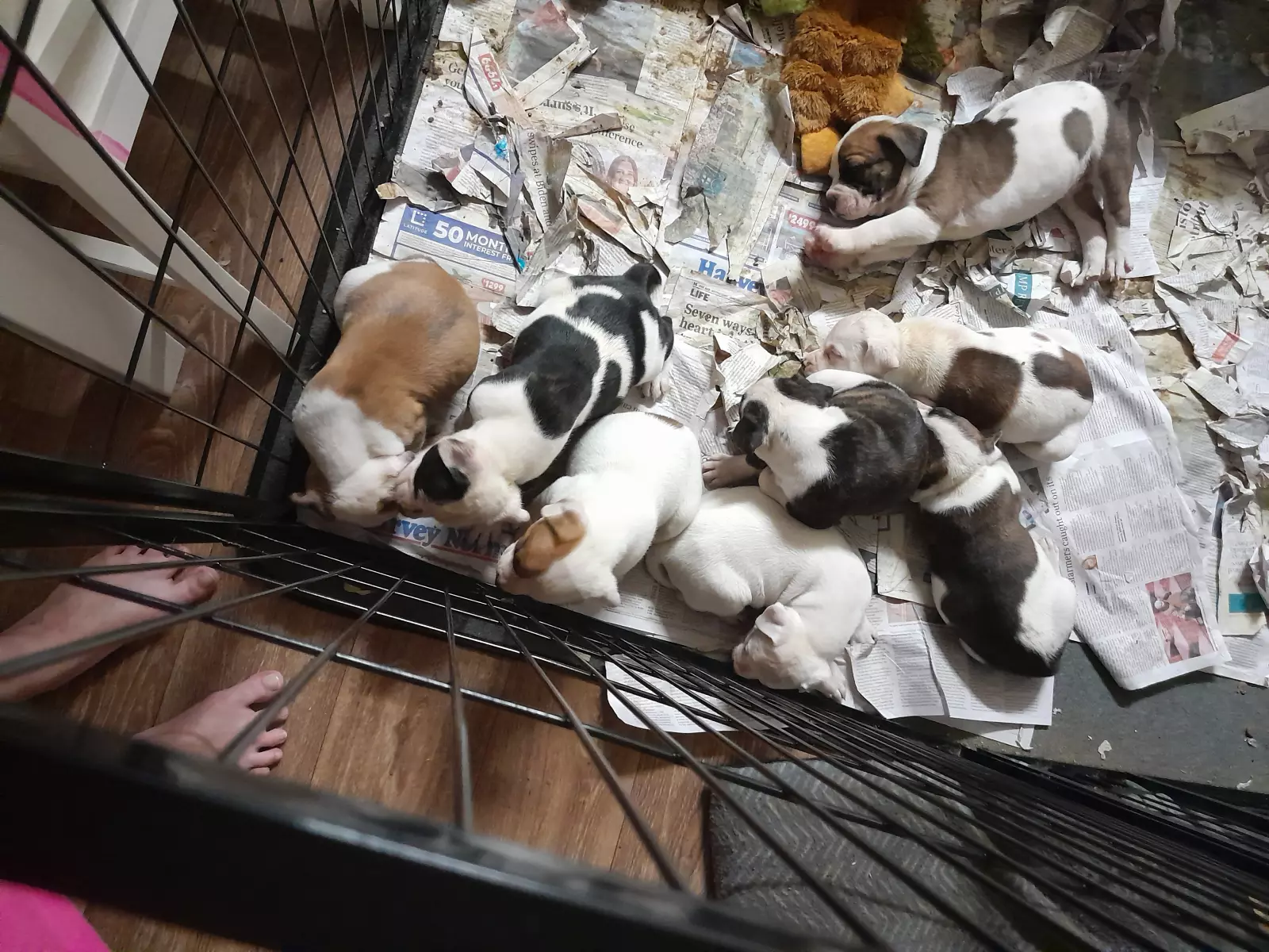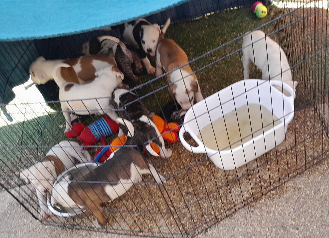 Healthy, chubby, playful american johnson bulldog puppies 7 weeks old, eating solids, beautiful colours, they all have unique personalities, microchipped and vaccinated, wormed every 2 weeks, vet checked, for more information please contact