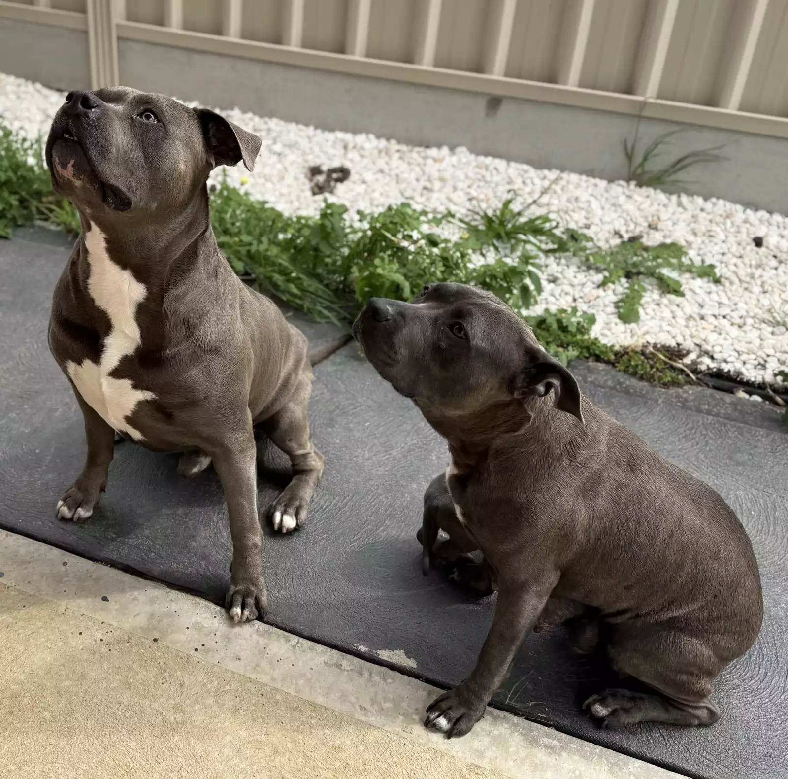 We both own mum and dad, beautiful blue Amstaffs raised in a child-friendly home from birth.
