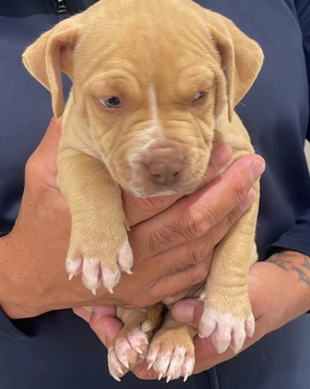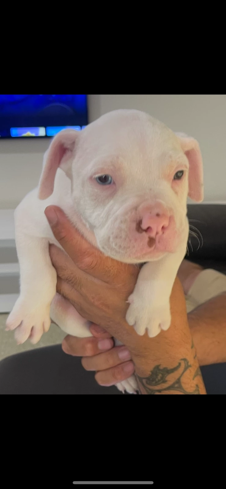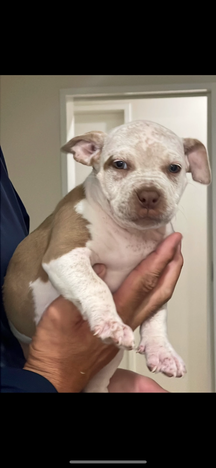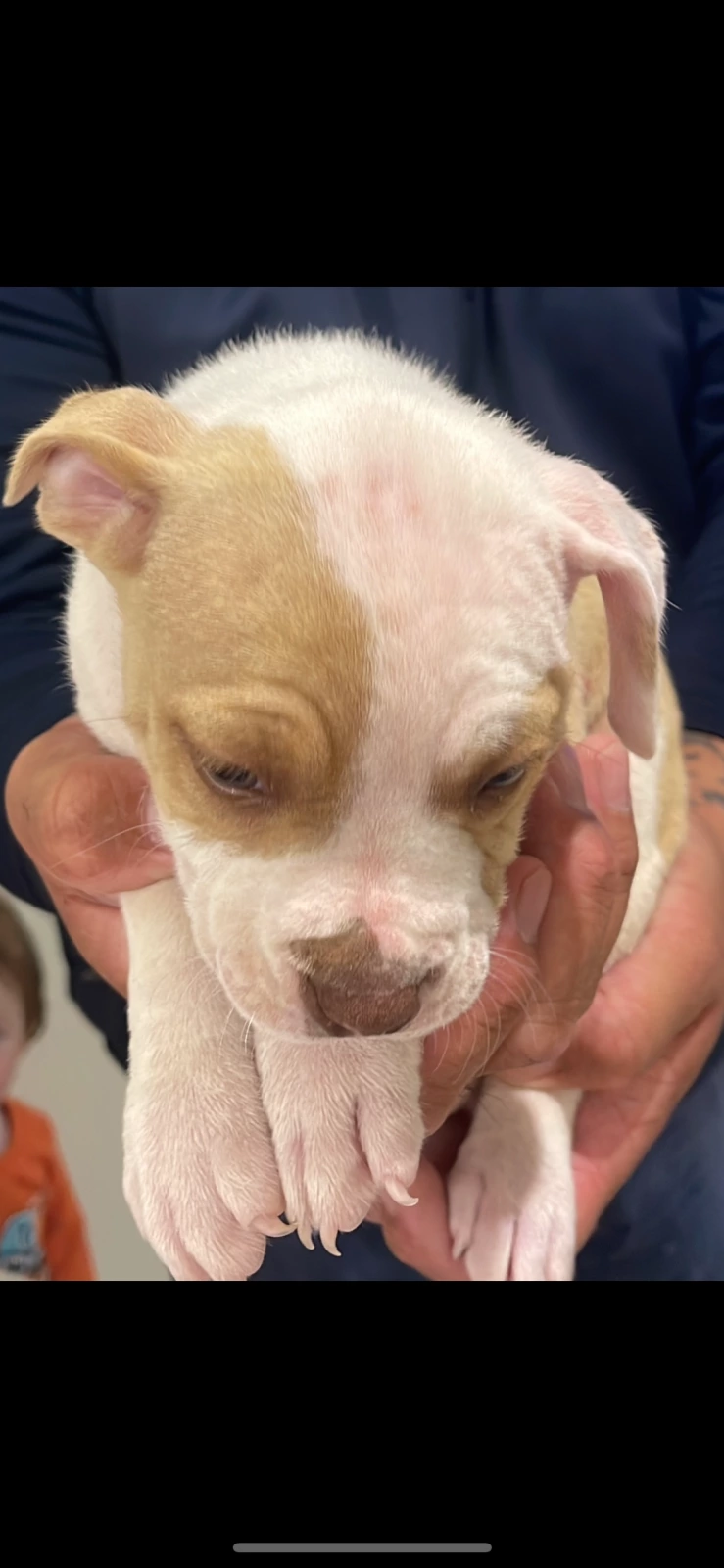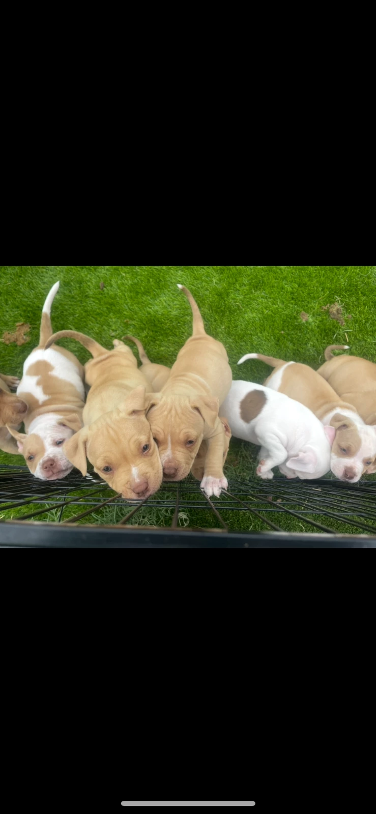 These adorable American Bully puppies are full of energy, affection, and personality. Raised in a loving family environment, they are well-socialised, playful, and used to being around children and other pets. Each pup has been carefully looked after, ensuring they are healthy, happy, and ready to join their forever homes. They have a strong build, beautiful markings, and a friendly temperament that makes them wonderful companions. Both parents have calm and loving natures and can be viewed with the pups. They’re now eating solid food, exploring confidently, and waiting for loving families to give them a home.