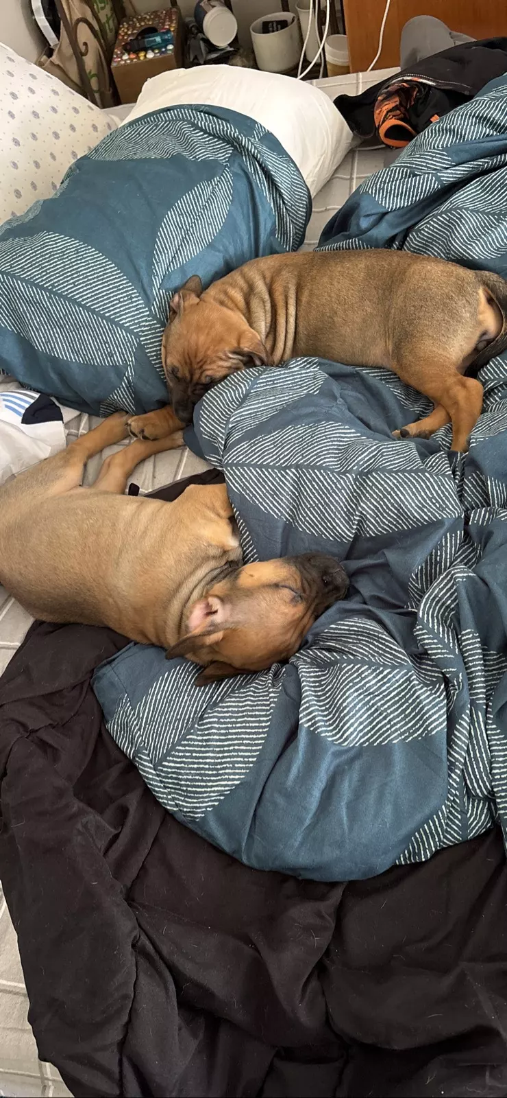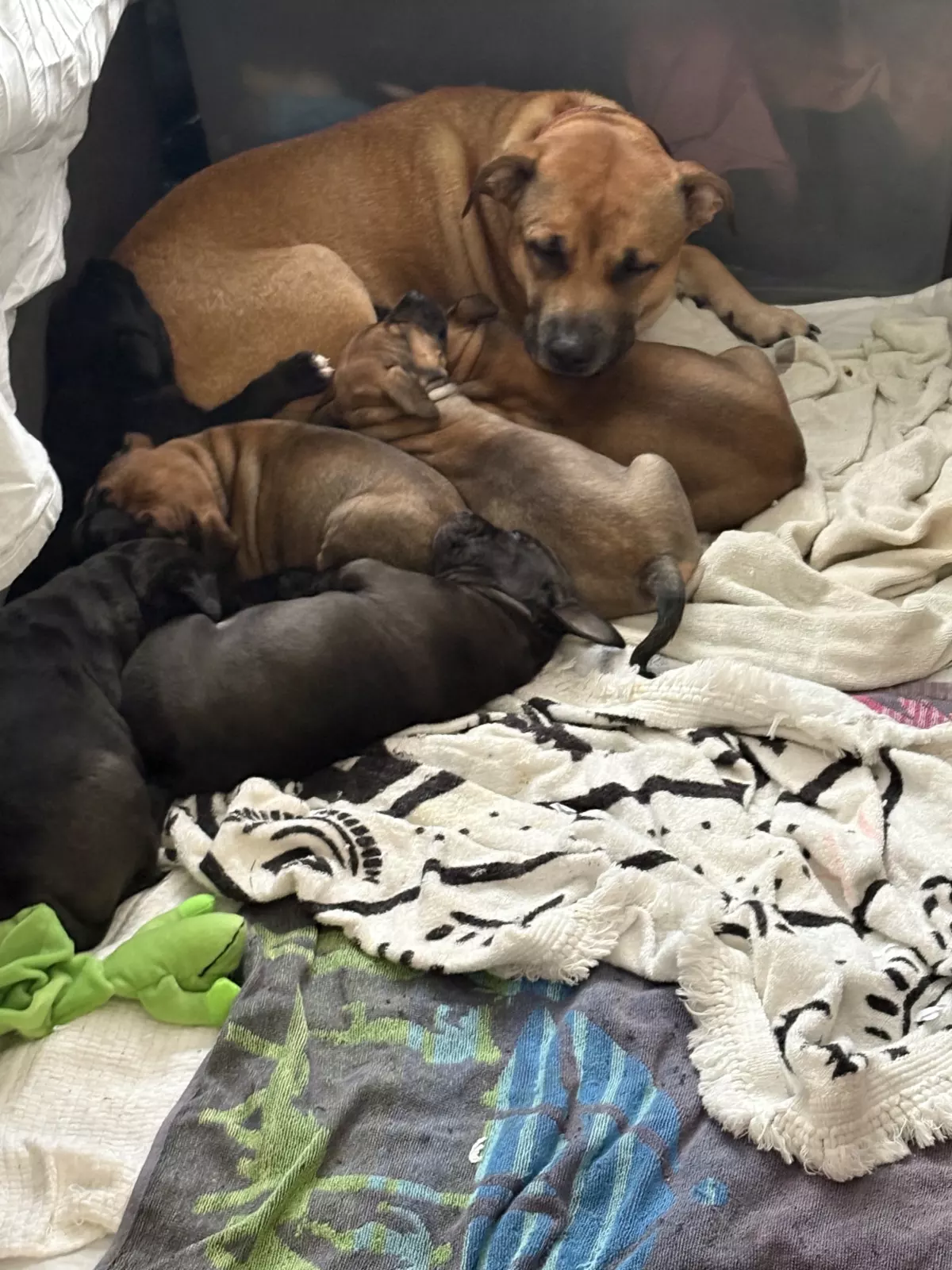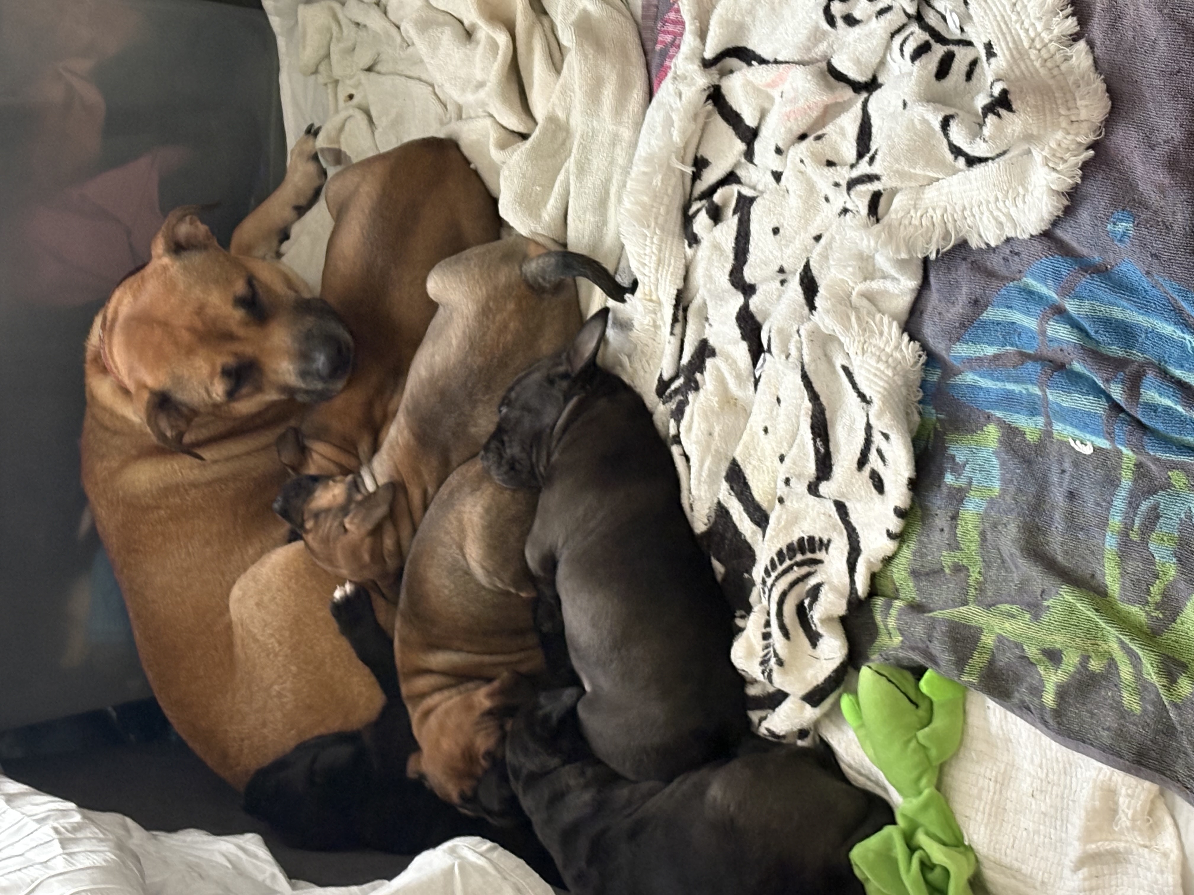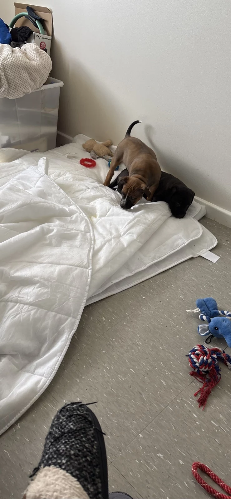 Dogs have access to: warm bedding, water at all times, ample space to exercise, natural light