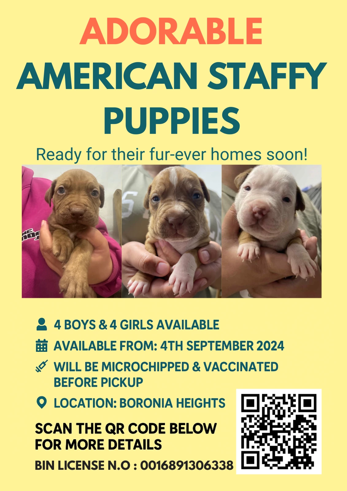 3 boys 4 girls available (1 adopted elsewhere)