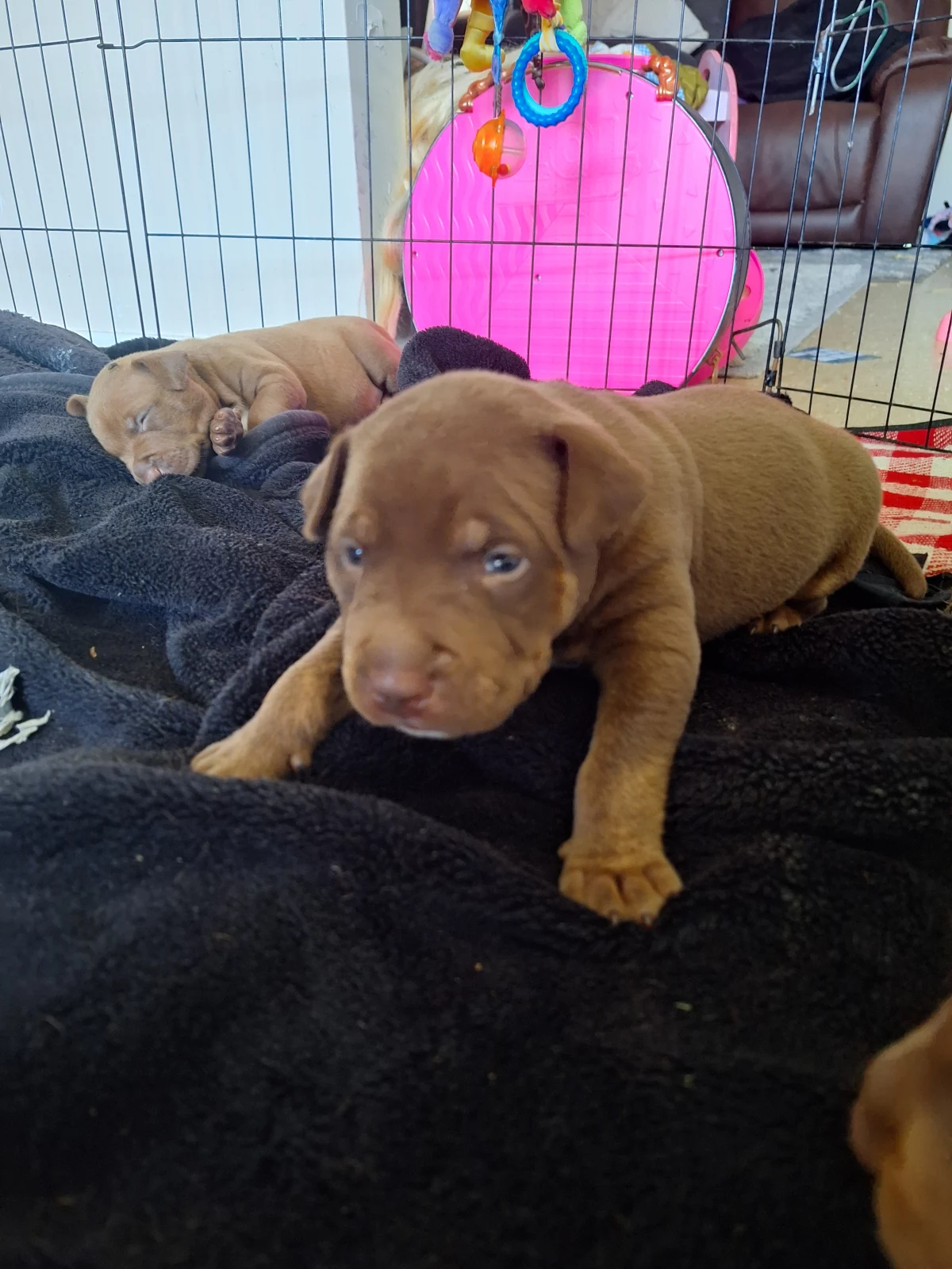 They’ve been raised in a loving home, well-socialised, playful, and used to being around people and other dogs.