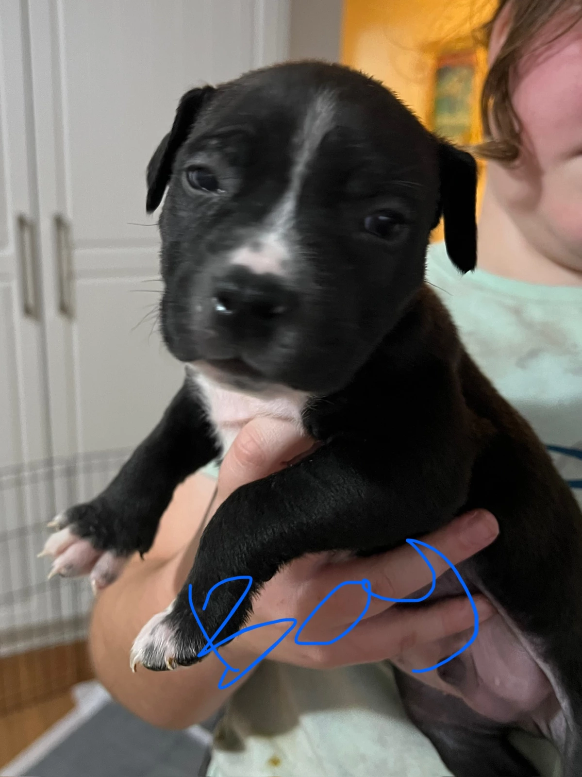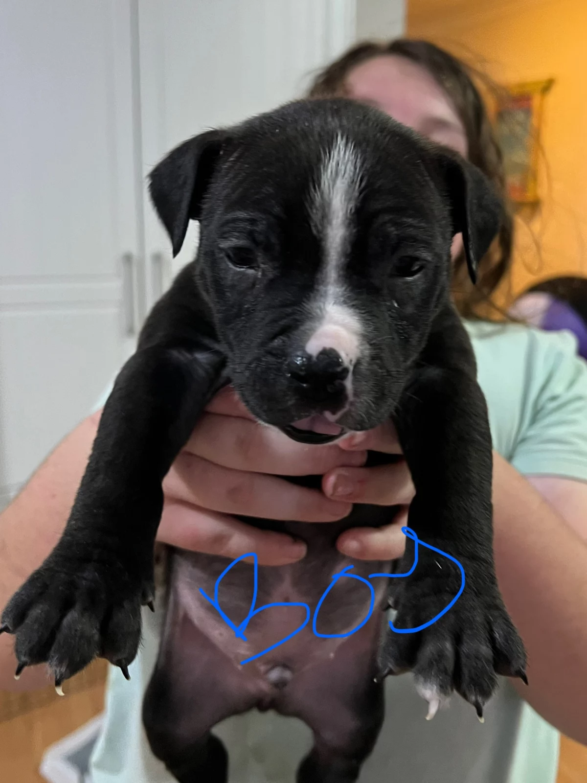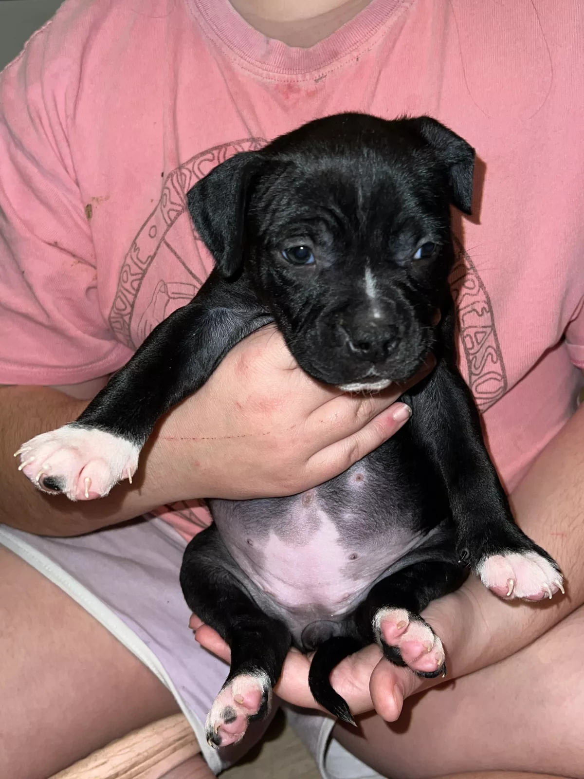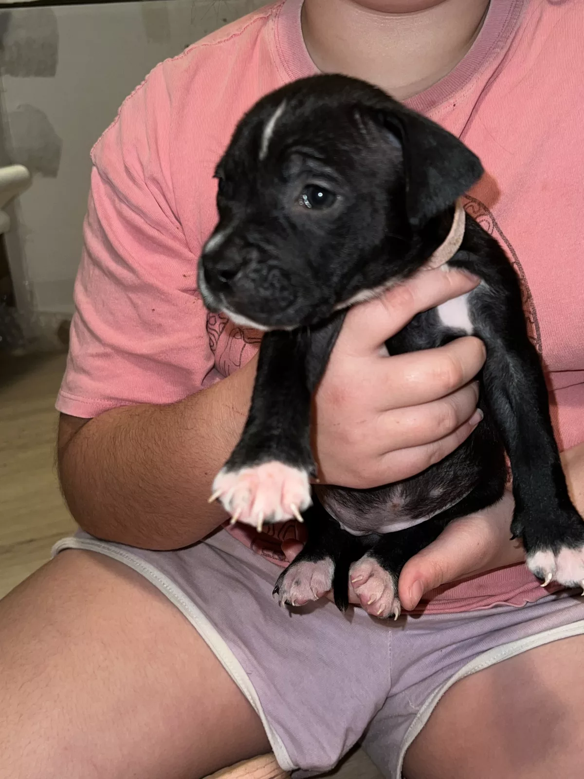 We have 8 beautiful Amstaff x puppies looking for their first and forever homes. Born 2/6/25. A healthy litter of 12.