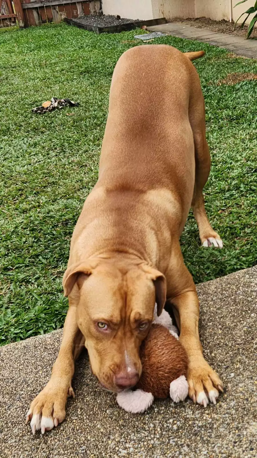 Meet Lockie, a charming 2-year-old Male Am Staff mix who's ready to make a loving addition to your family. With a DNA test showing he's almost 60% Amstaff, Lockie may have the appearance of a tough guy, but he's actually the sweetest softie you'll ever meet. Lovingly cared for and well-mannered, he's undergoing a change due to no fault of his own, and it's certainly not an easy decision to see him leave his current home.