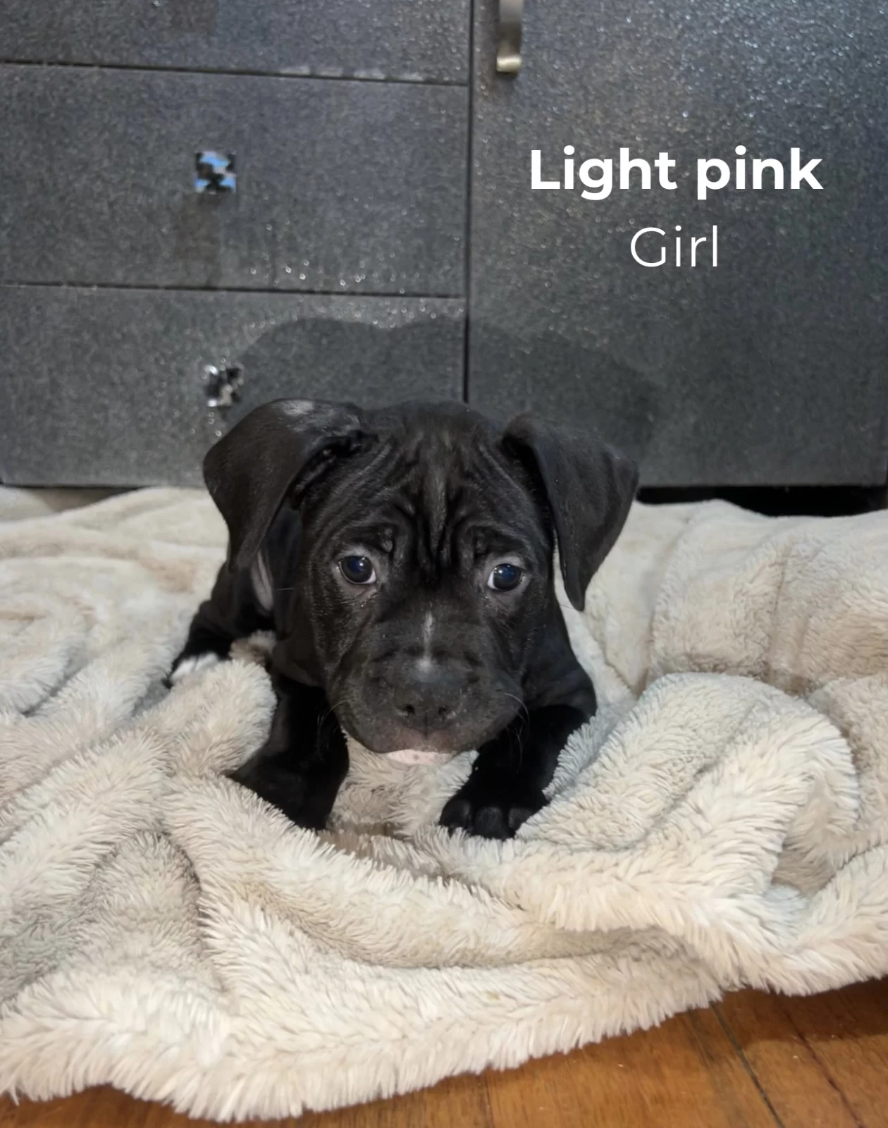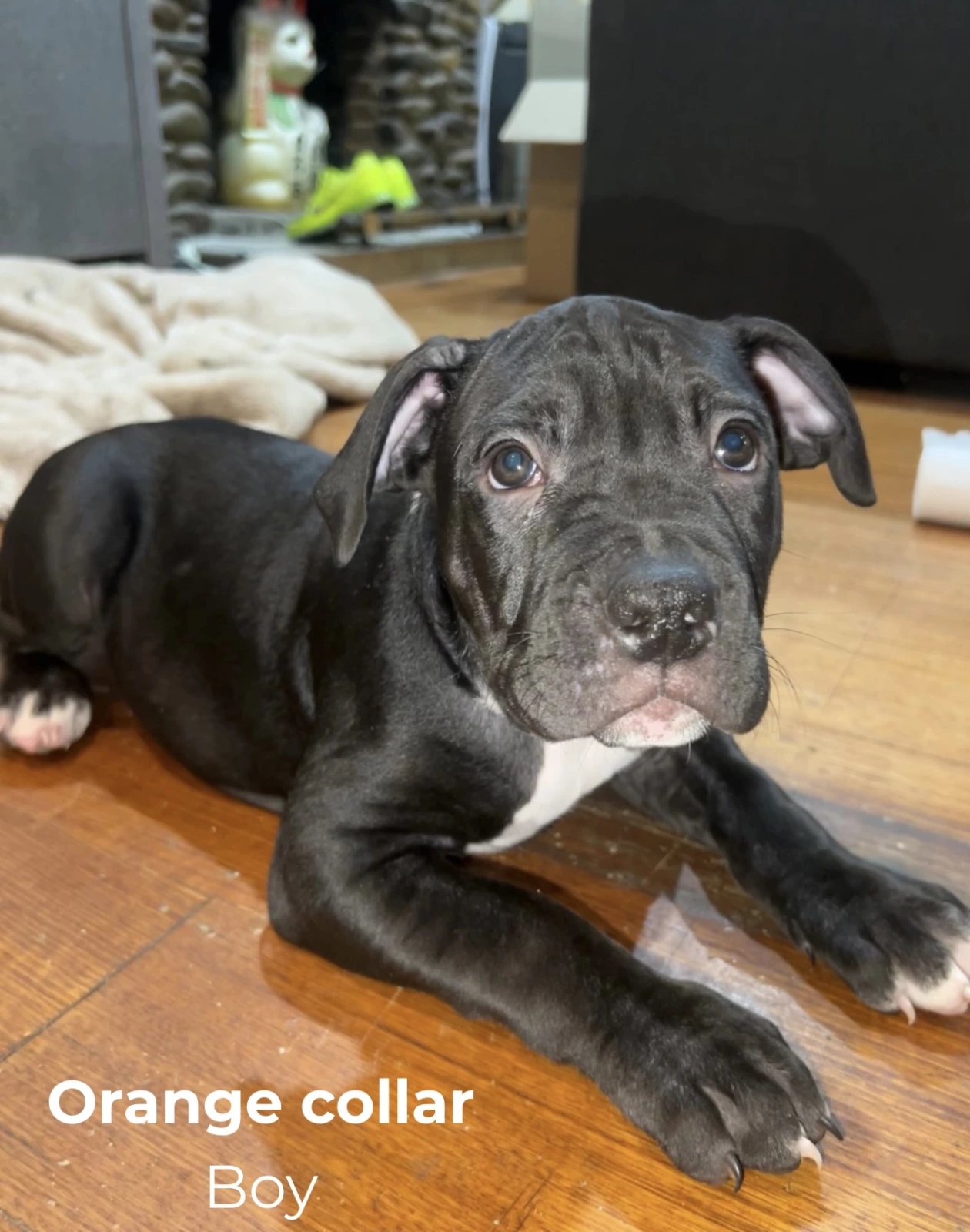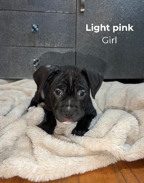 • Dad: American Staffy x Cane Corso x Bullmastiff – calm, powerful, gentle giant with a big heart.