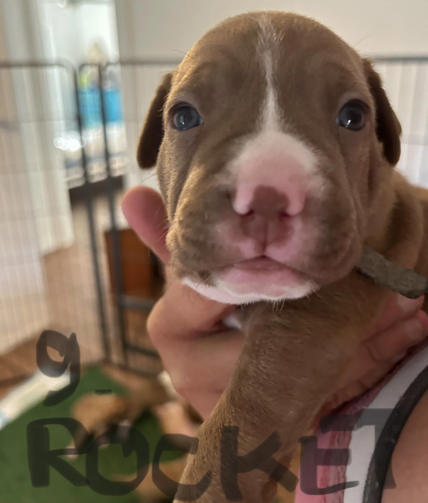 I have 9 beautiful purebred American Staffordshire Terrier puppies looking for their forever homes — 4 boys and 5 girls available.