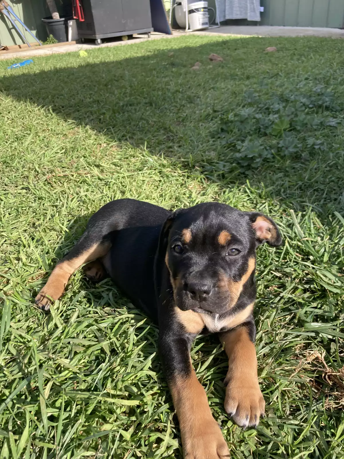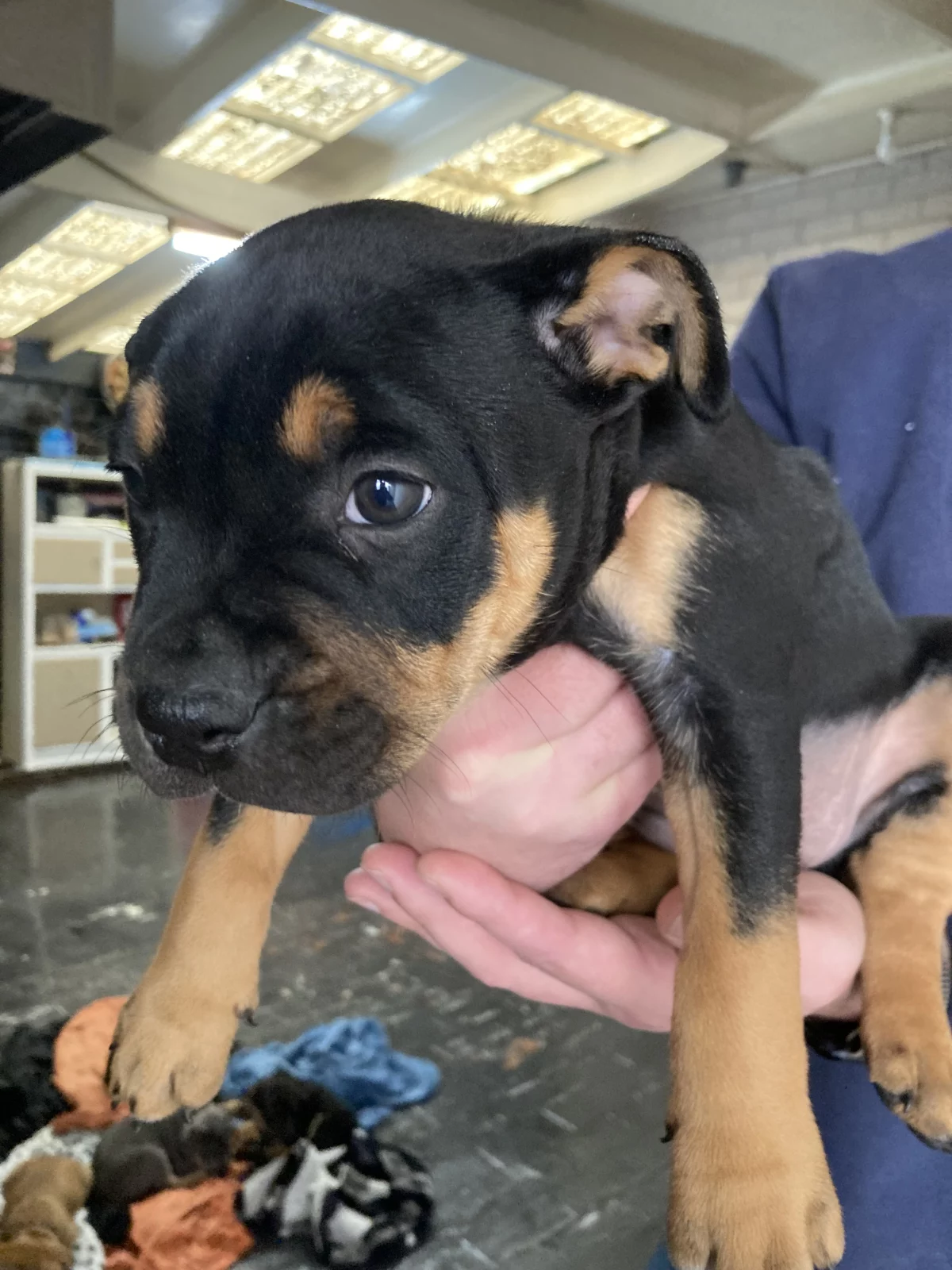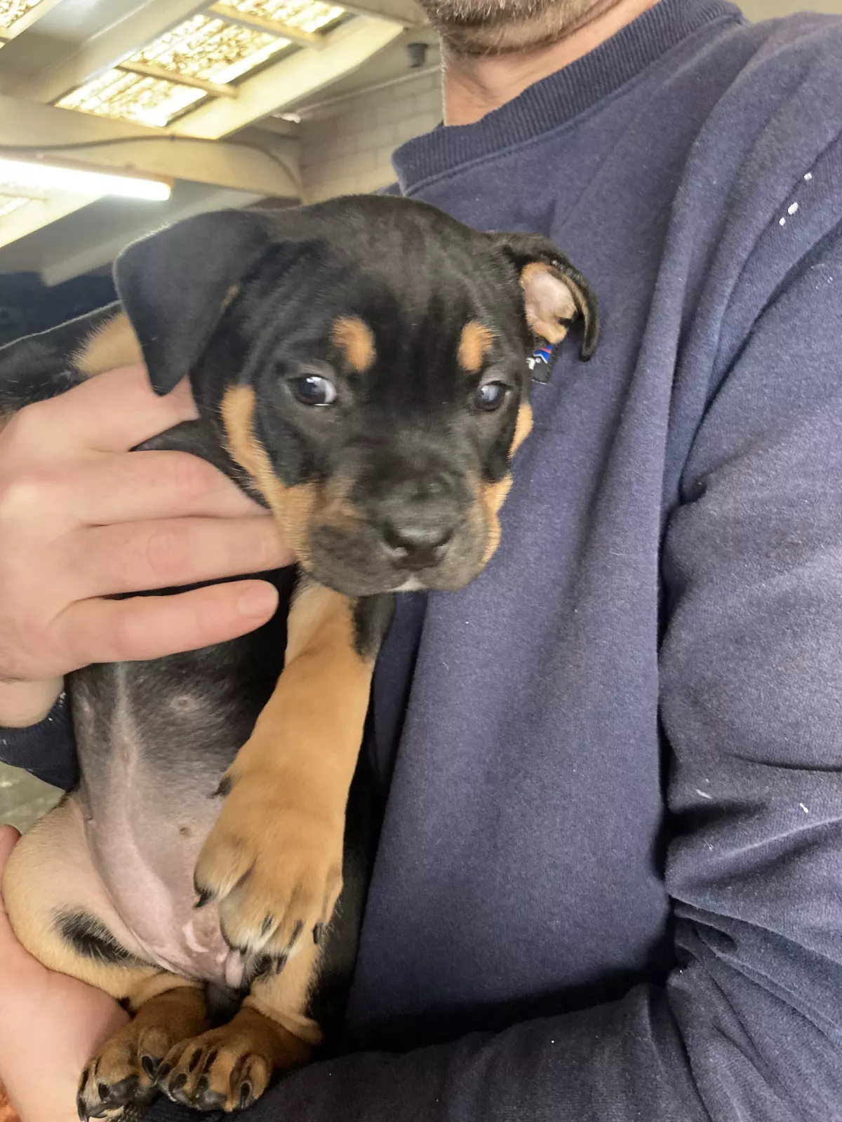 Adorable tri female American Bull Staffy — full of love, energy, and personality. She’s a beautiful little girl with stunning markings and a soft, shiny coat. Very playful, affectionate, and loves to be around people. She’s great with kids and other pets, always wagging her tail and ready for cuddles or playtime.