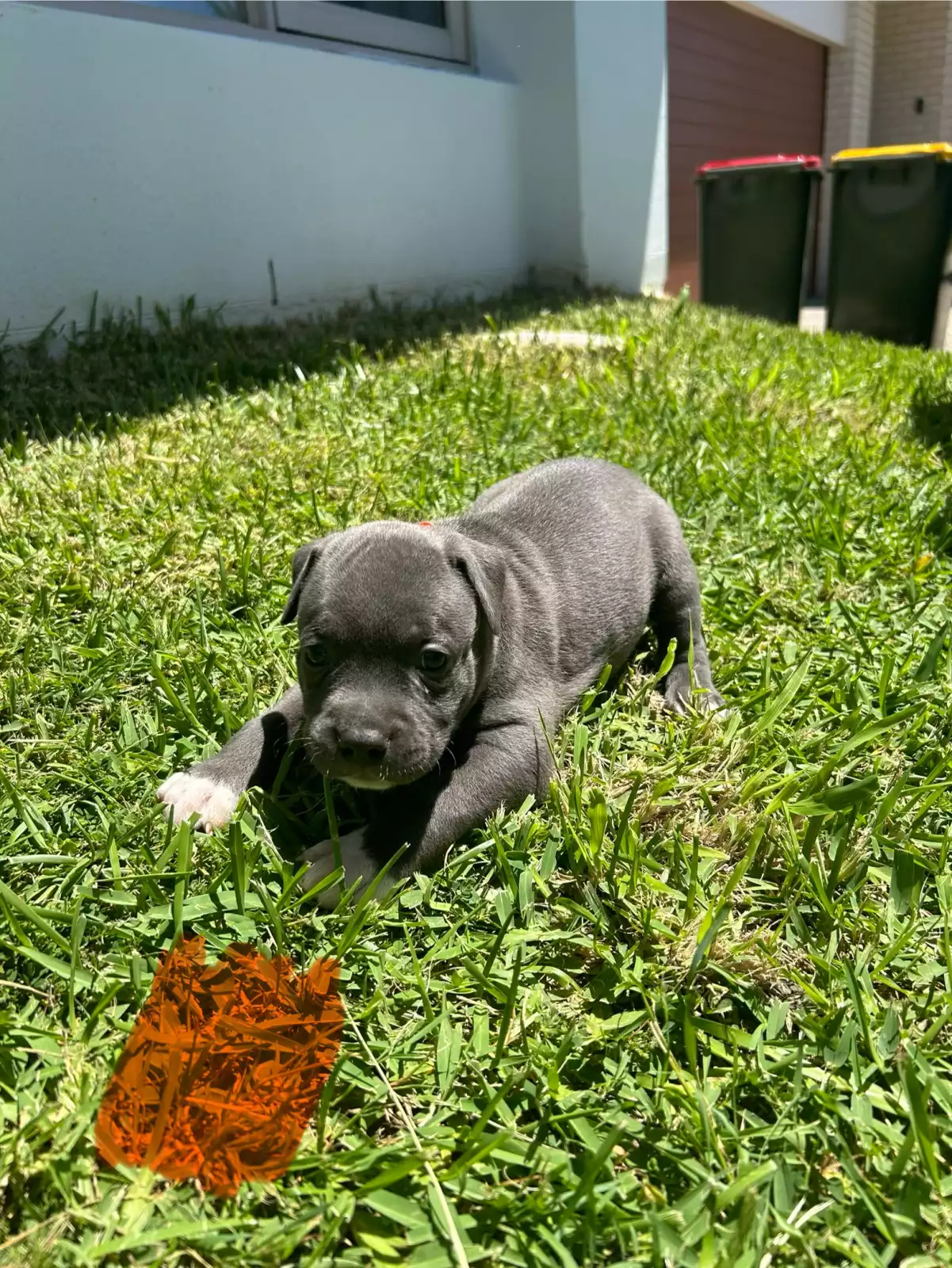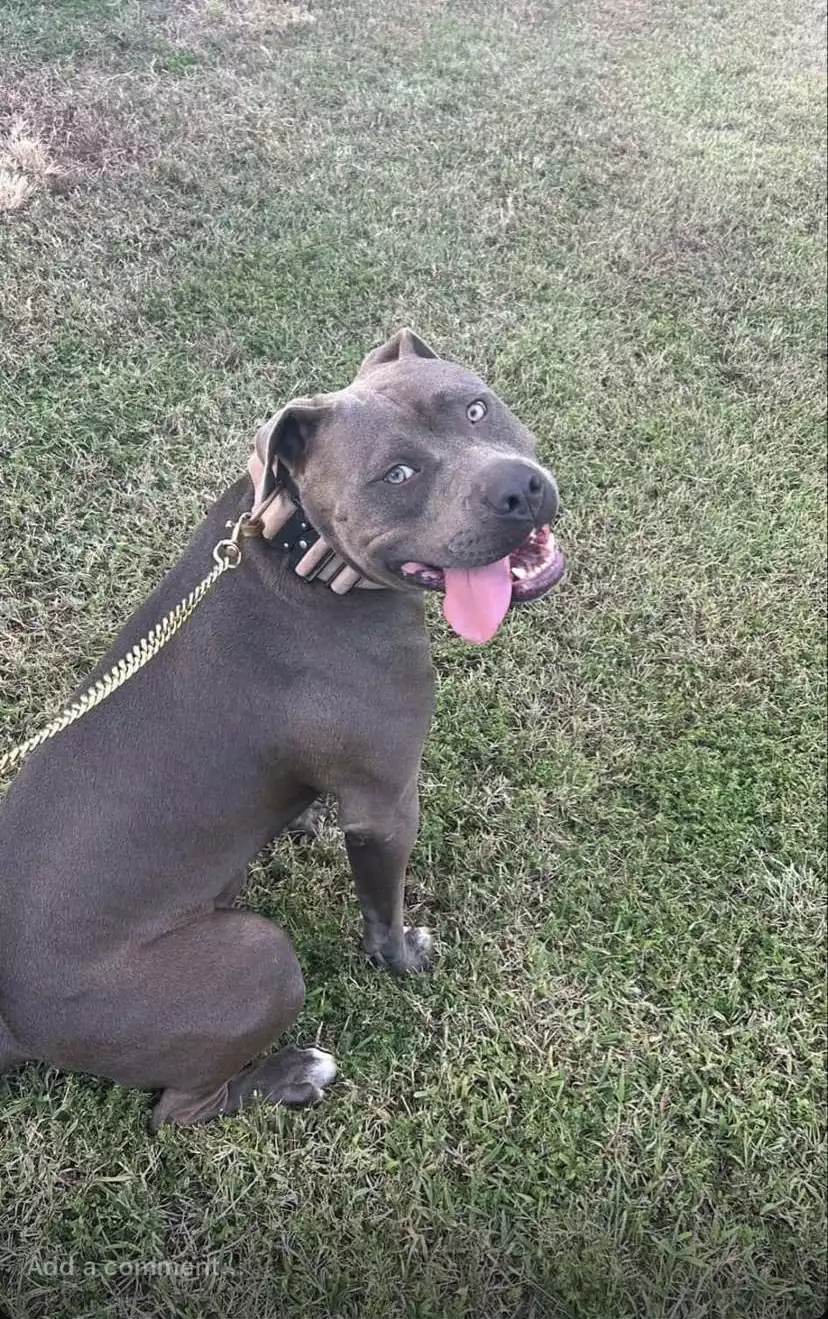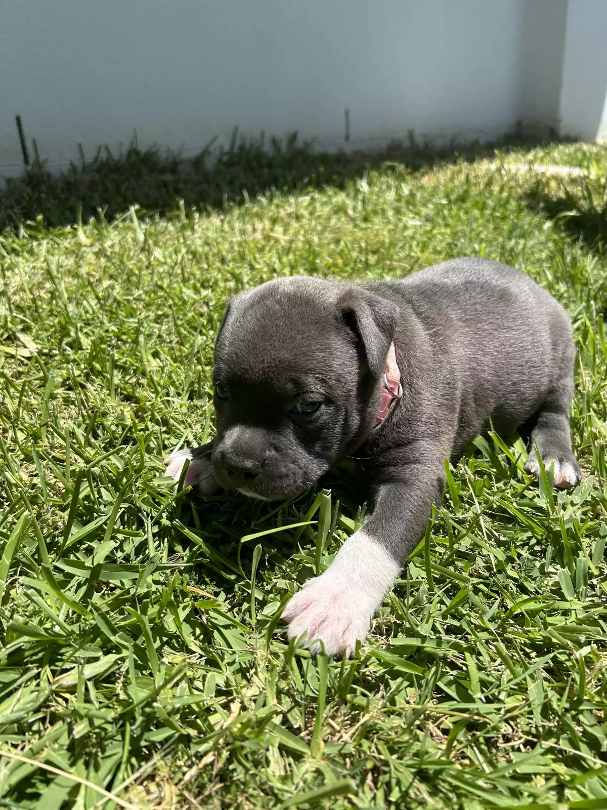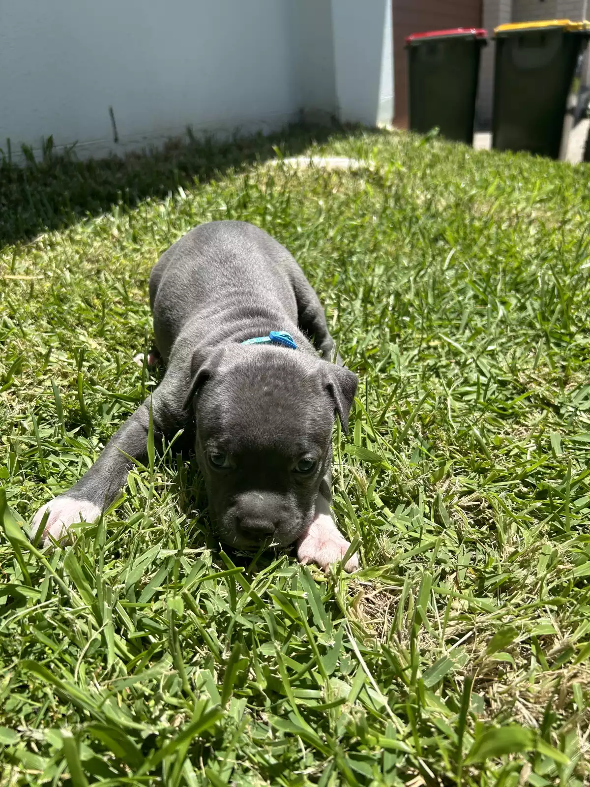Purebred blue American Staffordshire Terrier puppies.