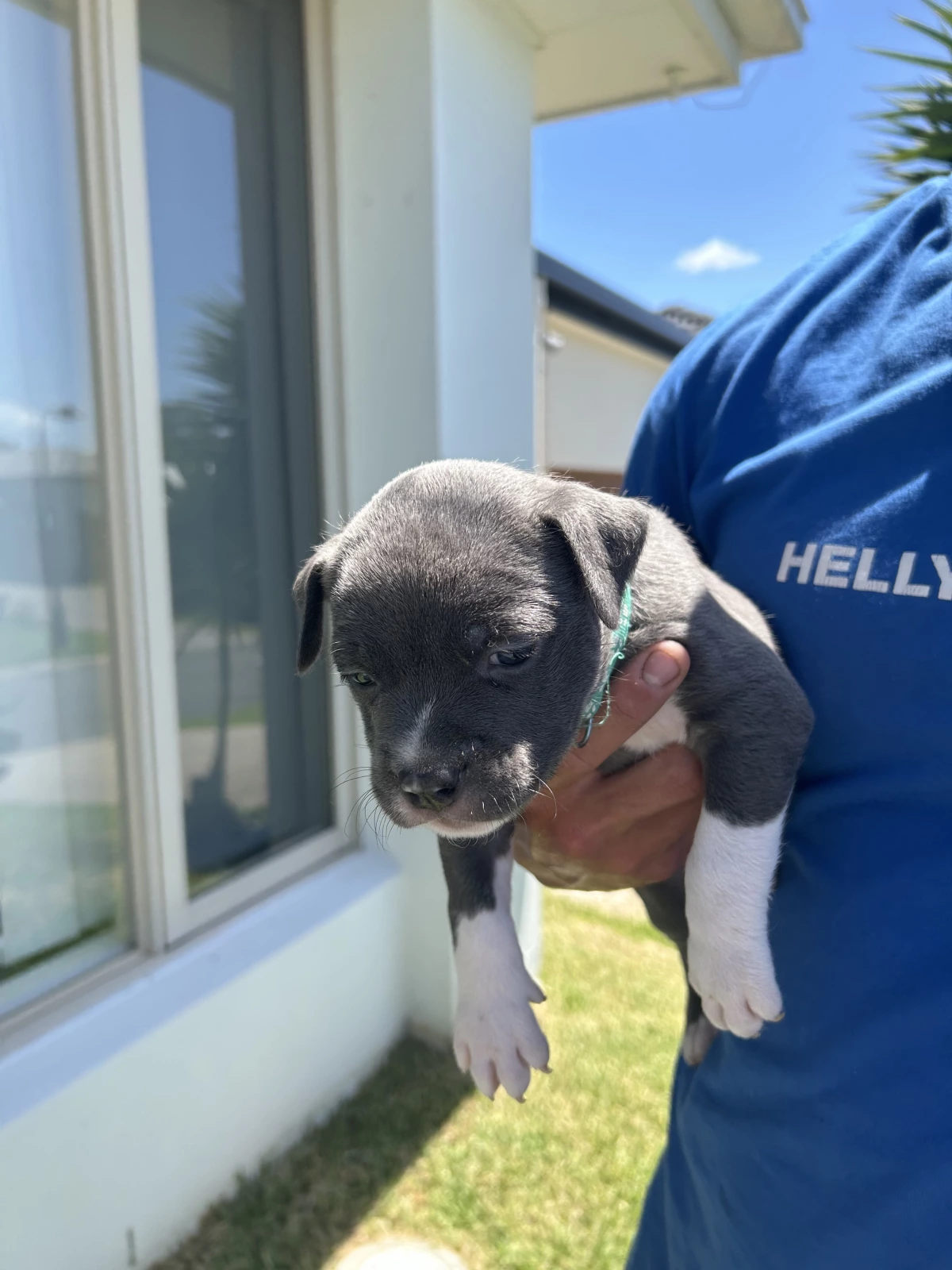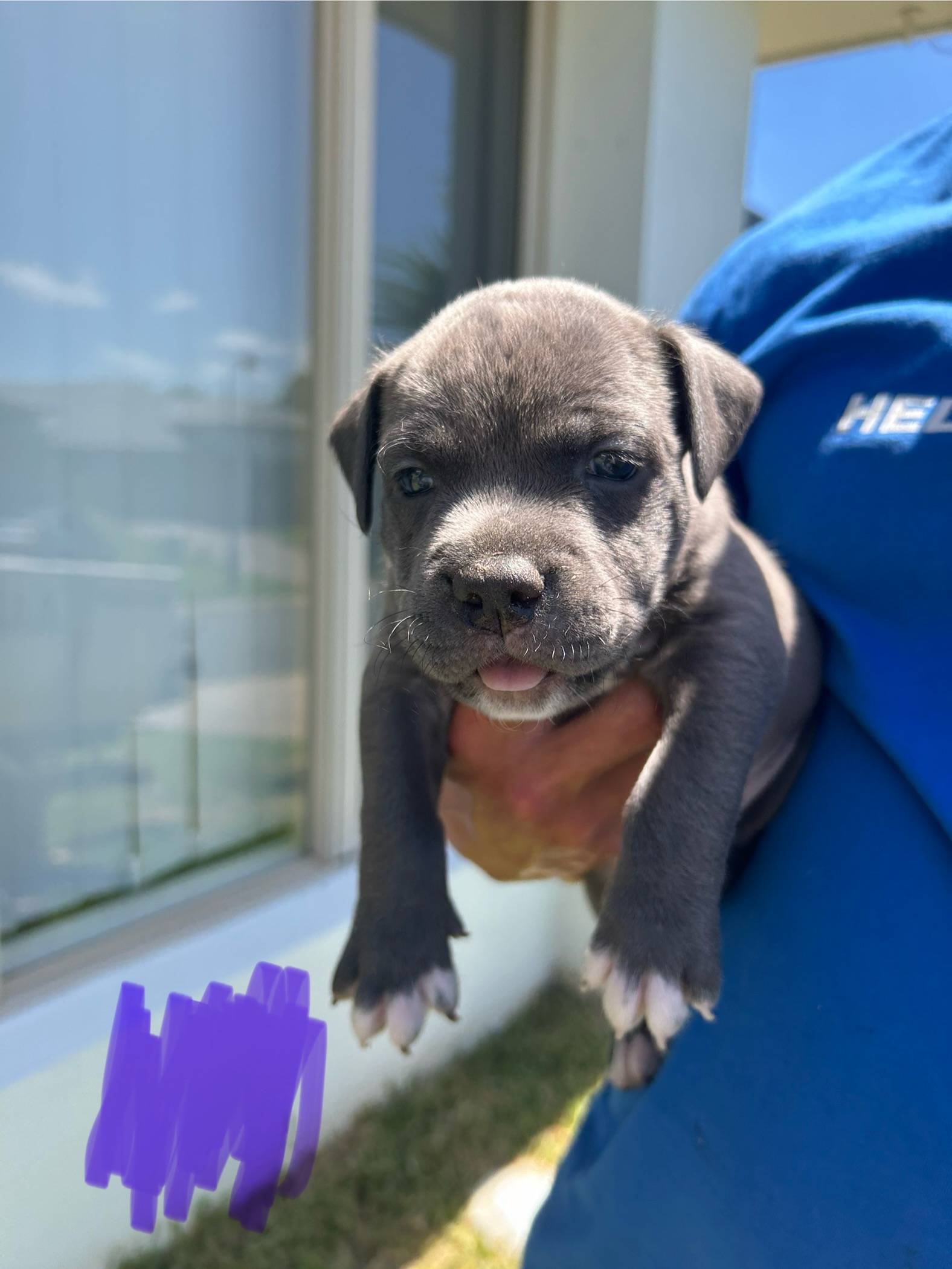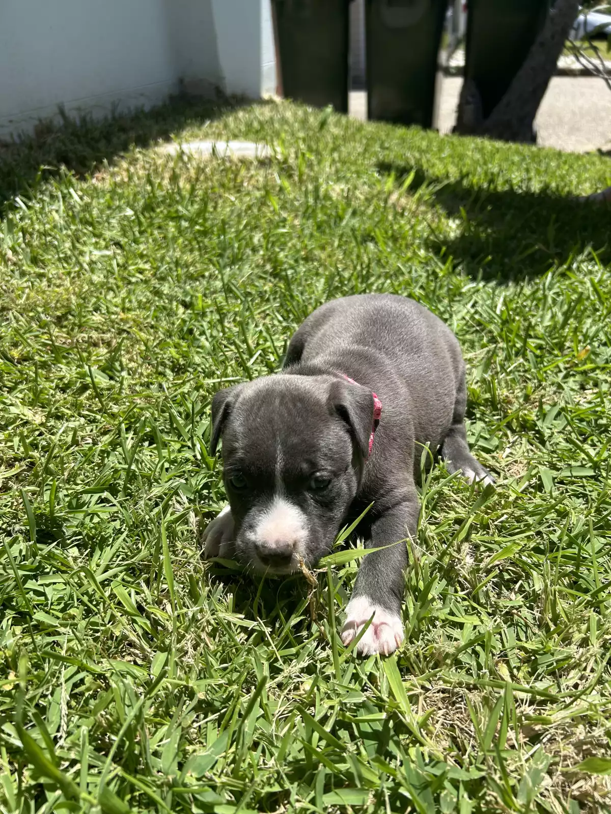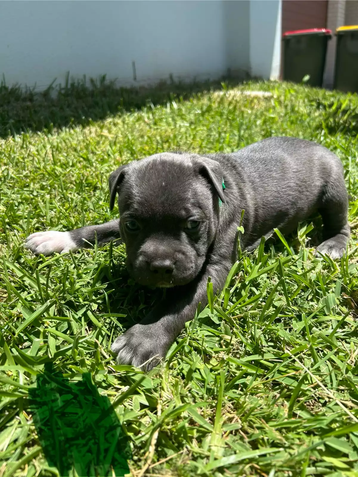 Purebred blue American Staffordshire Terrier puppies.