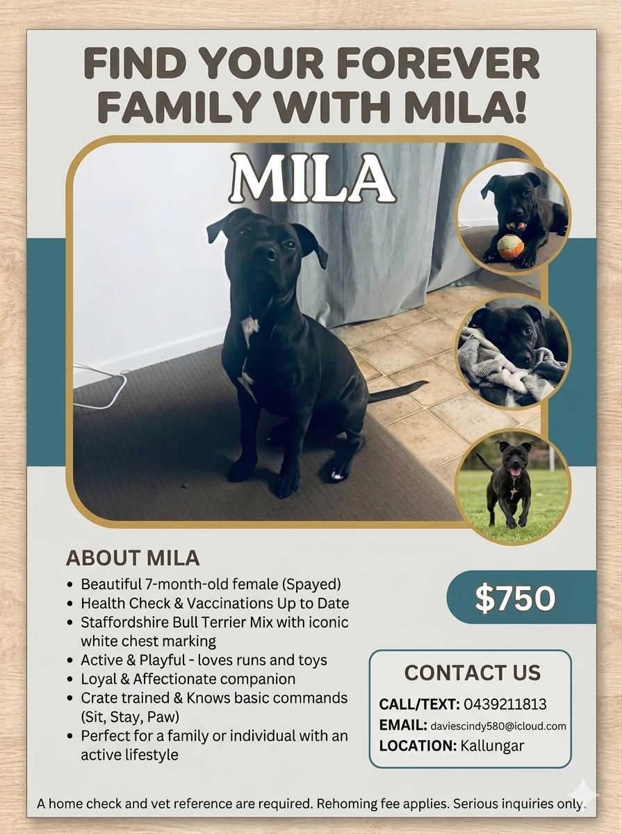 • Knows basic commands (Sit, Stay, Paw) Perfect for a family or individual with an active lifestyle
