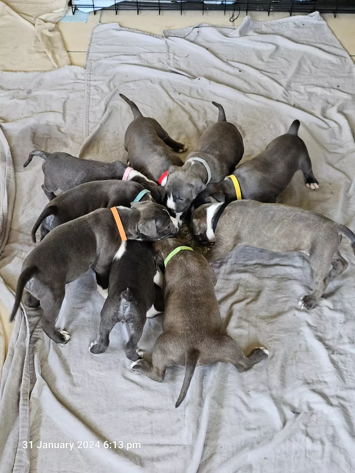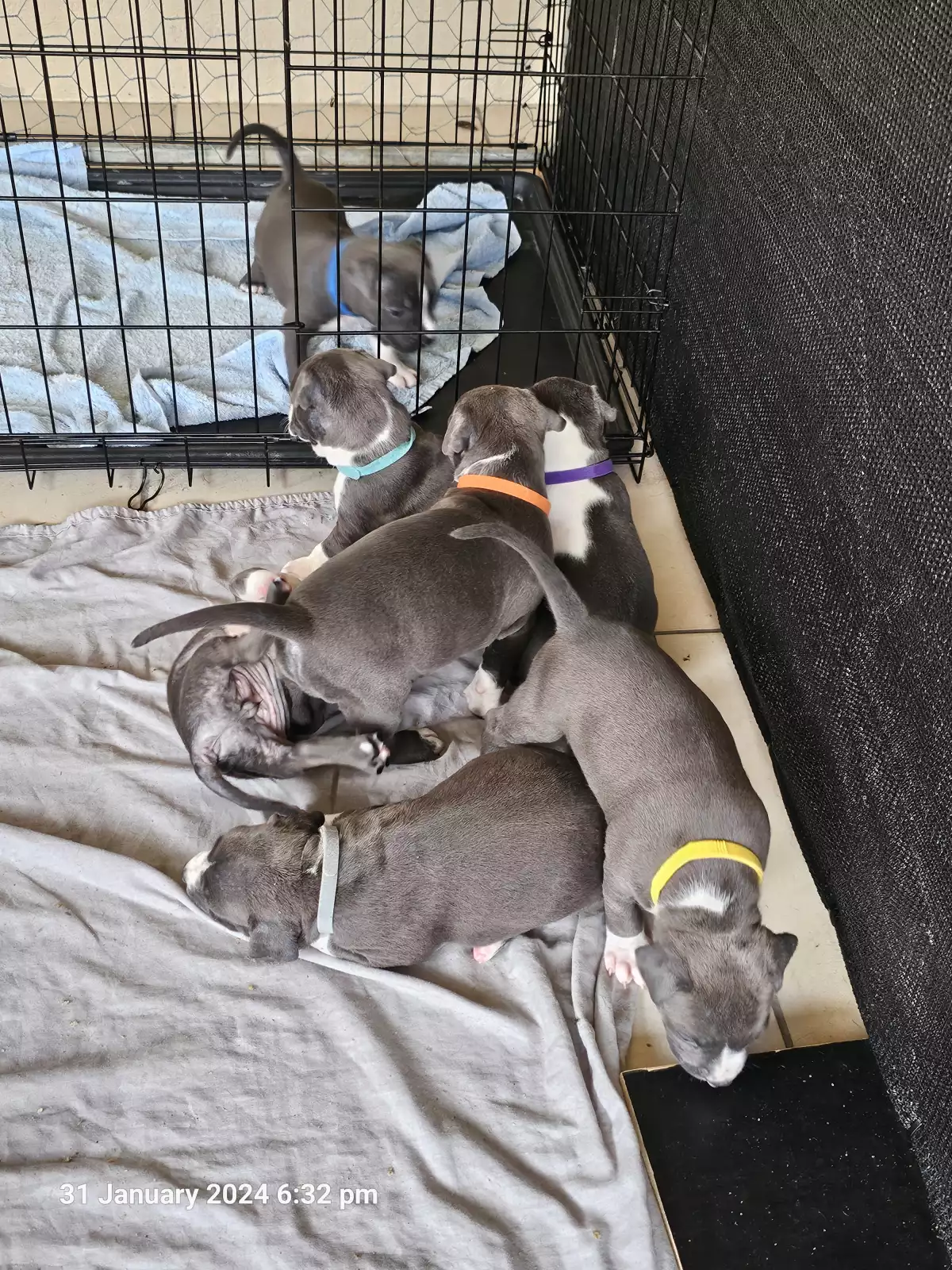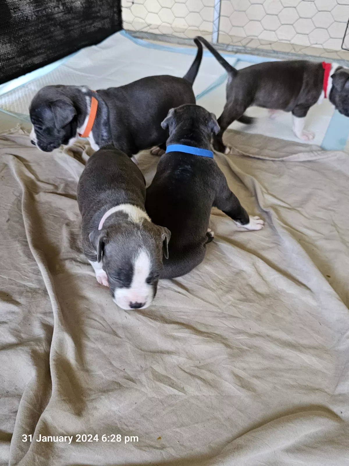 Puppies are booked in for their vaccinations, microchips and full health check on the 10/2/24 at 6 weeks of age.