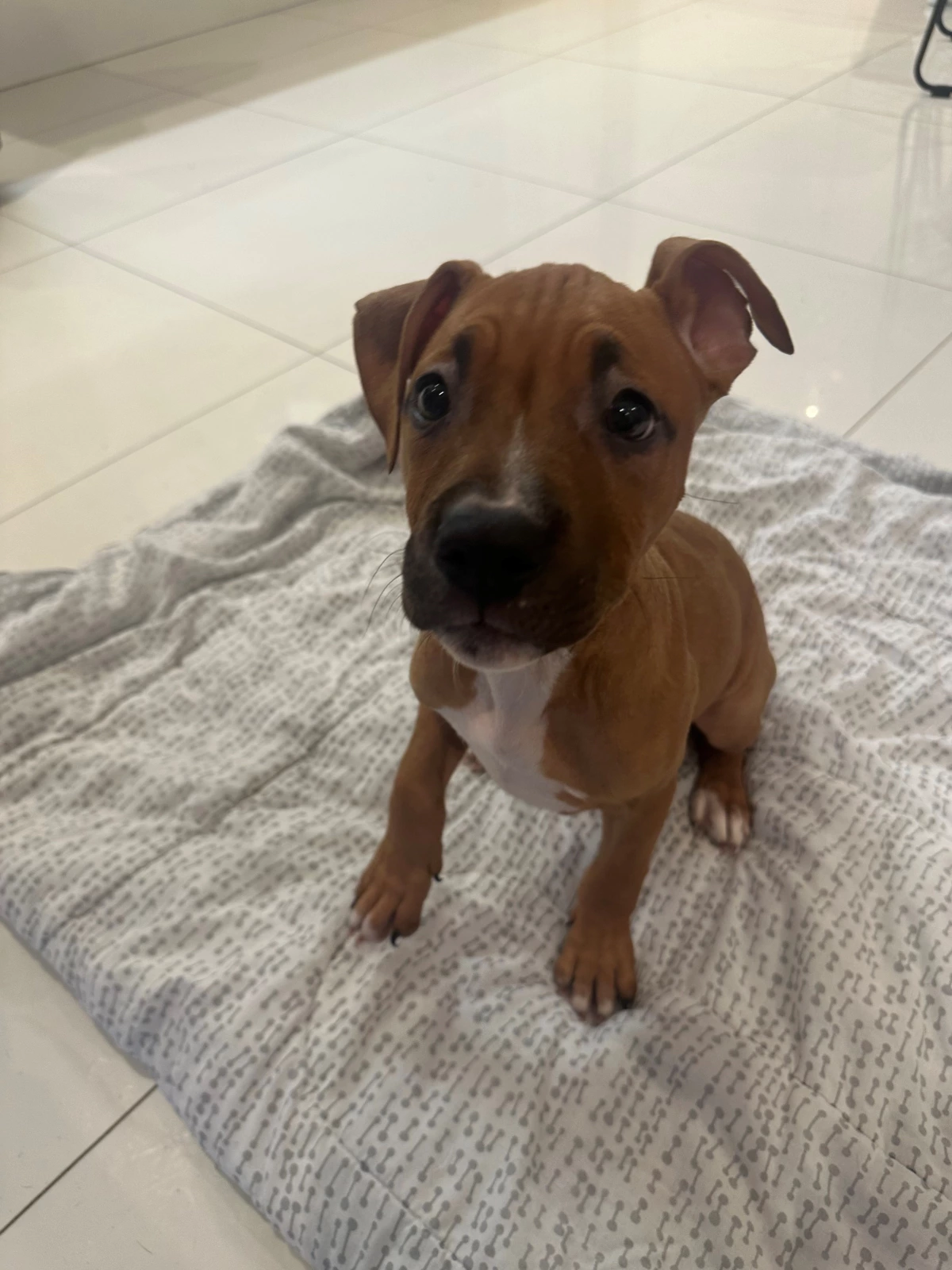 6 adorable Staffy puppies for sale — 5 males and 1 female — all looking for a loving home.
