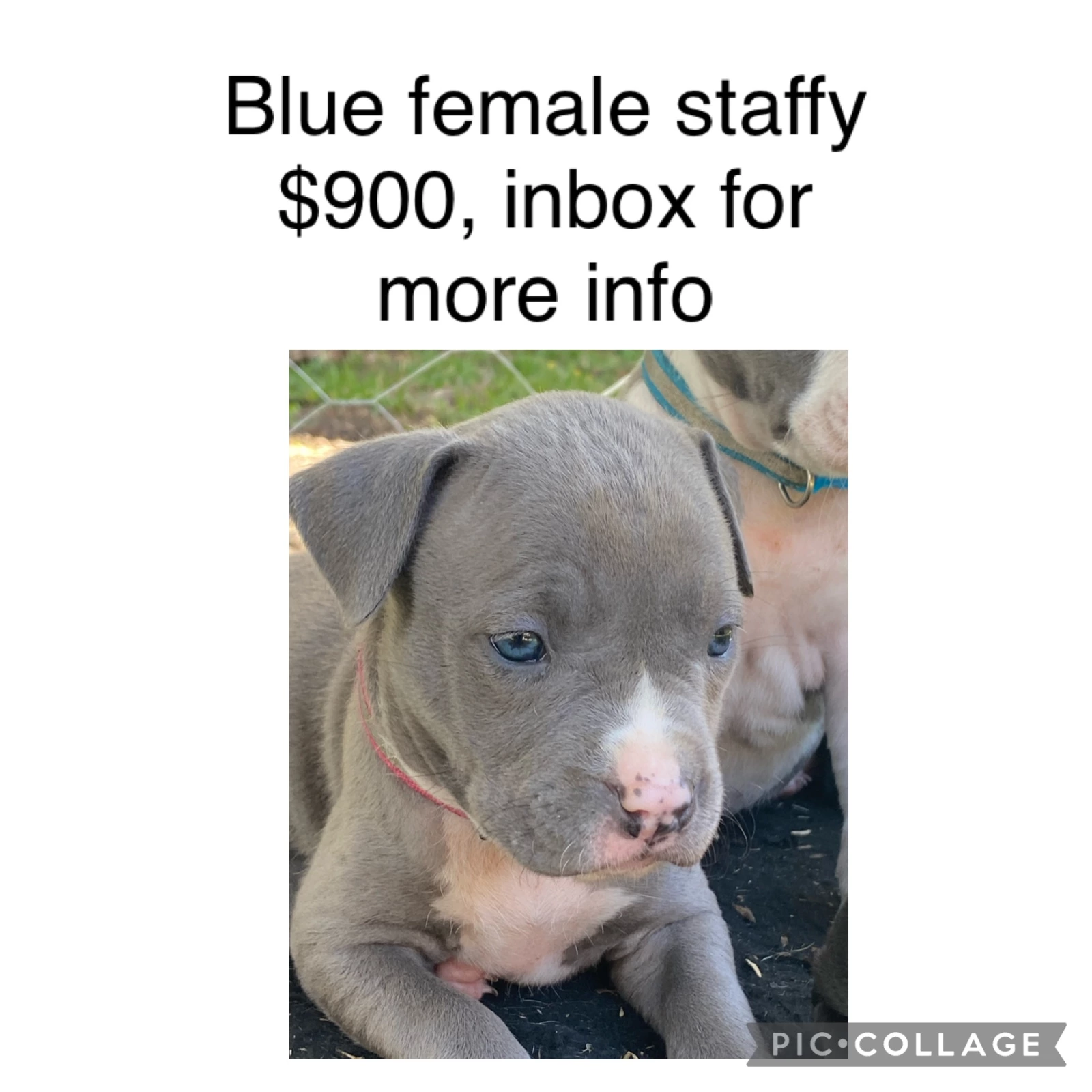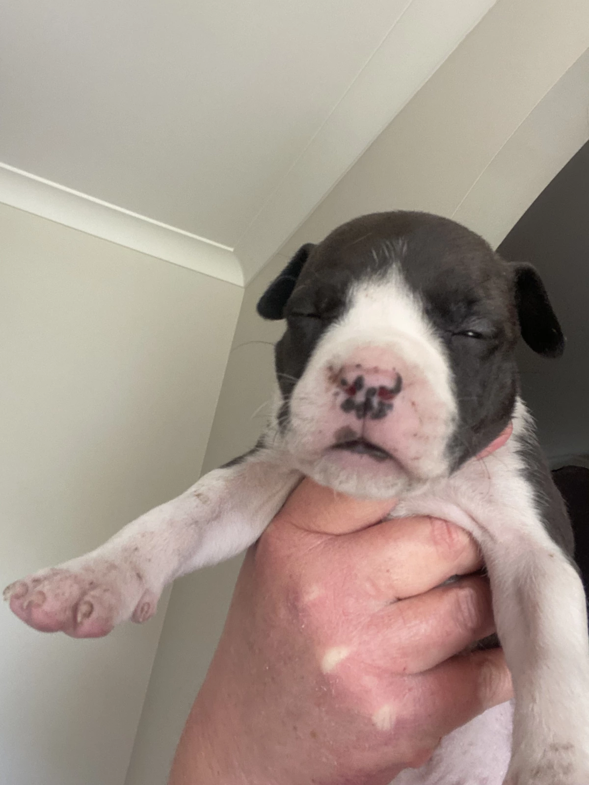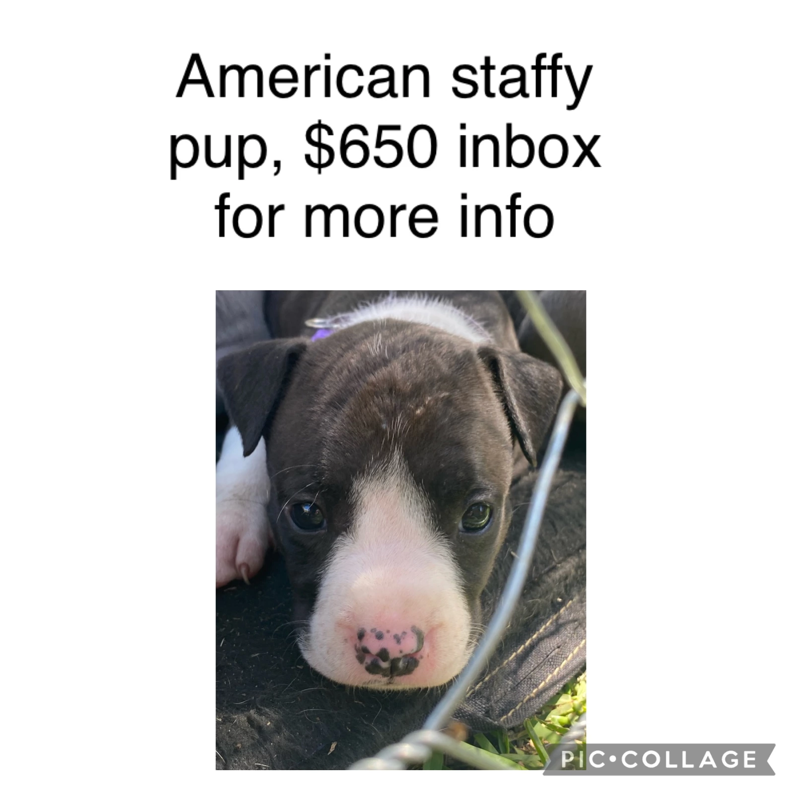 I have a beautiful litter of pure bred American Staffy puppies available and ready to find their loving forever homes soon. There is 1 blue female and 3 black and white puppies still available. Mum is a lovely tan colour and dad is a stunning blue, both with excellent temperaments and DNA paperwork for peace of mind.