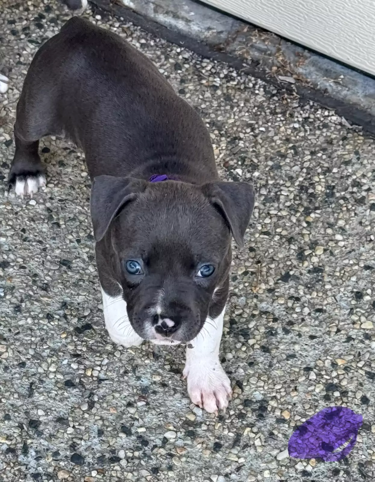 Purple collar - blue and white girl
