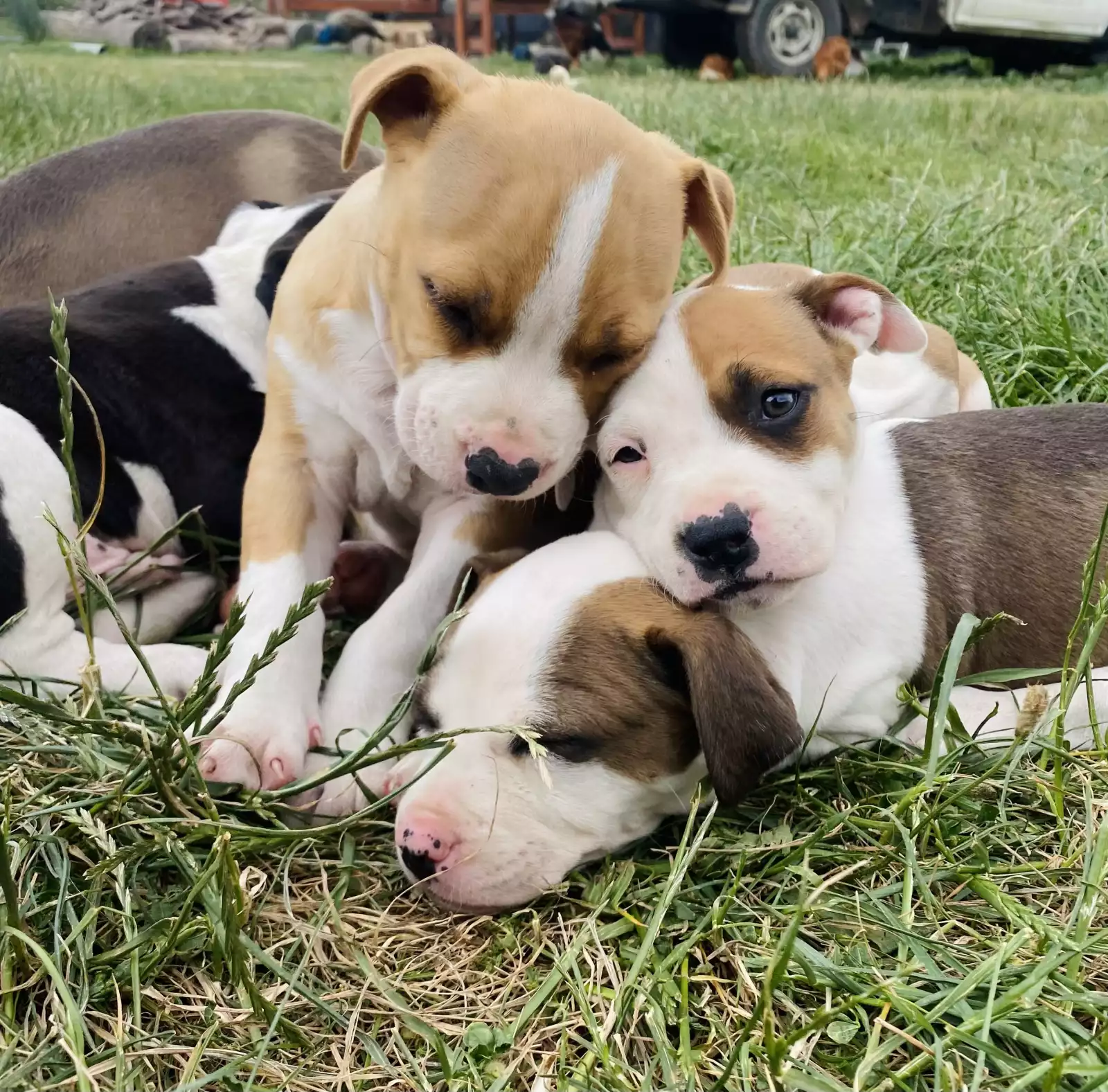 beautiful American Staffordshire puppies ready to go to their forever home . These adorable pups have been taken care of in with other dogs, cat, ducks, sheep, chickens and peacocks and have been around children since birth. The puppies have been wormed every 2 weeks, microchipped, vaccinated and vet checked. We are very passionate about these adorable little fluff balls and strive to provide others with the happiness they exert. Each puppy will come with a puppy pack. If you have any questions please don't hesitate to contact us. Viewing of the mother and father is most welcomed.
