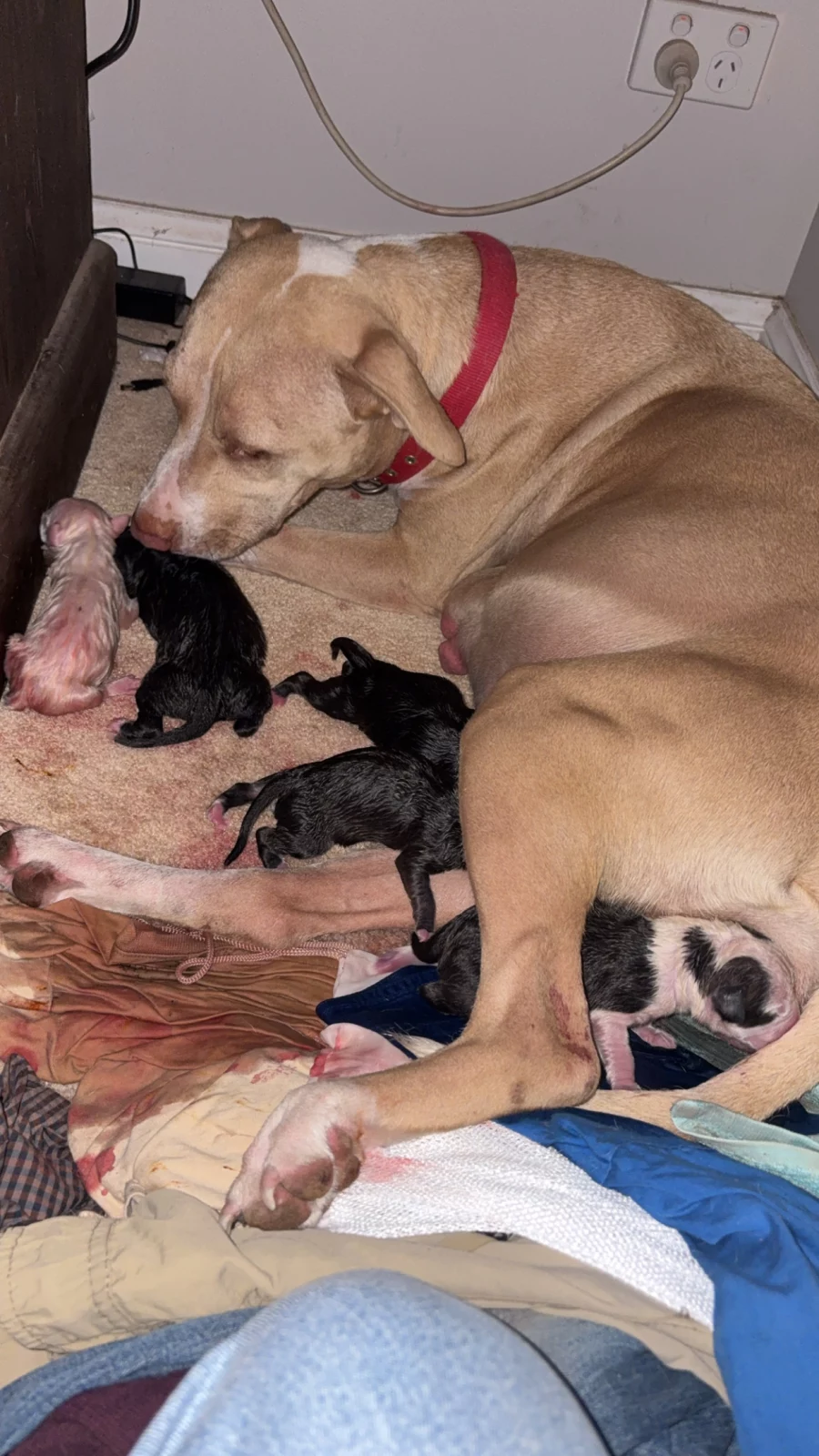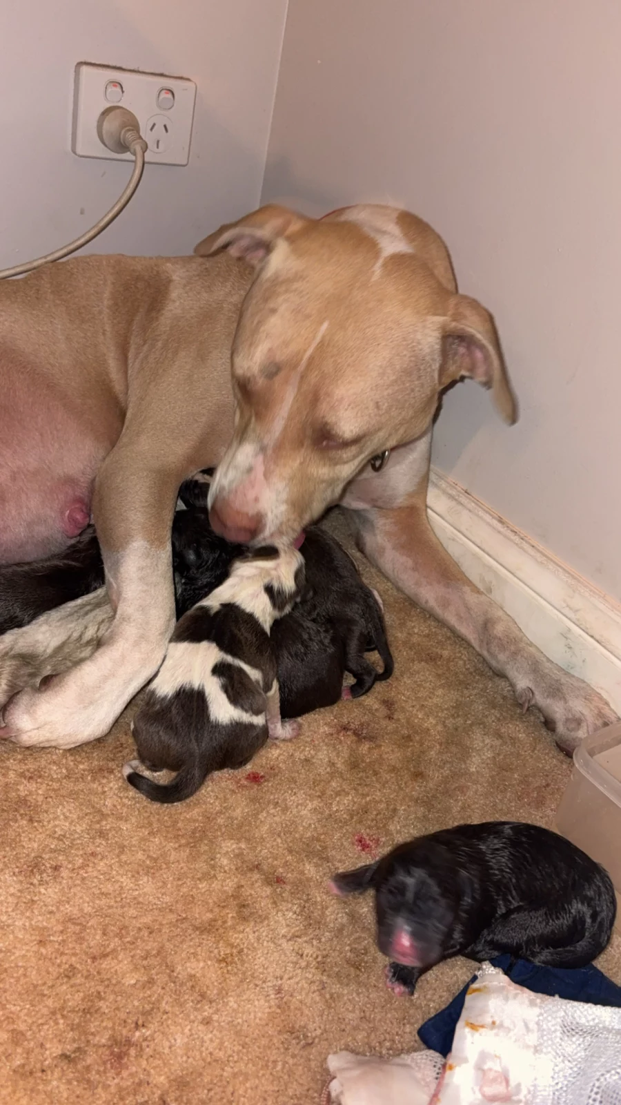 Dogs have access to: warm bedding, water at all times, ample space to exercise, natural light