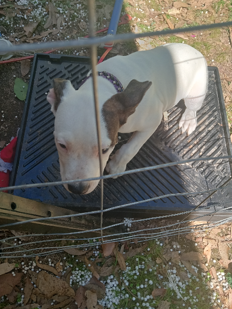 This sweet little girl has been raised in a loving home and is very friendly, playful, and affectionate. She enjoys cuddles, playtime, and spending time with children, making her a perfect addition to any family. She is healthy, energetic, and has a loving temperament, showing the loyal and gentle nature typical of American Staffys.