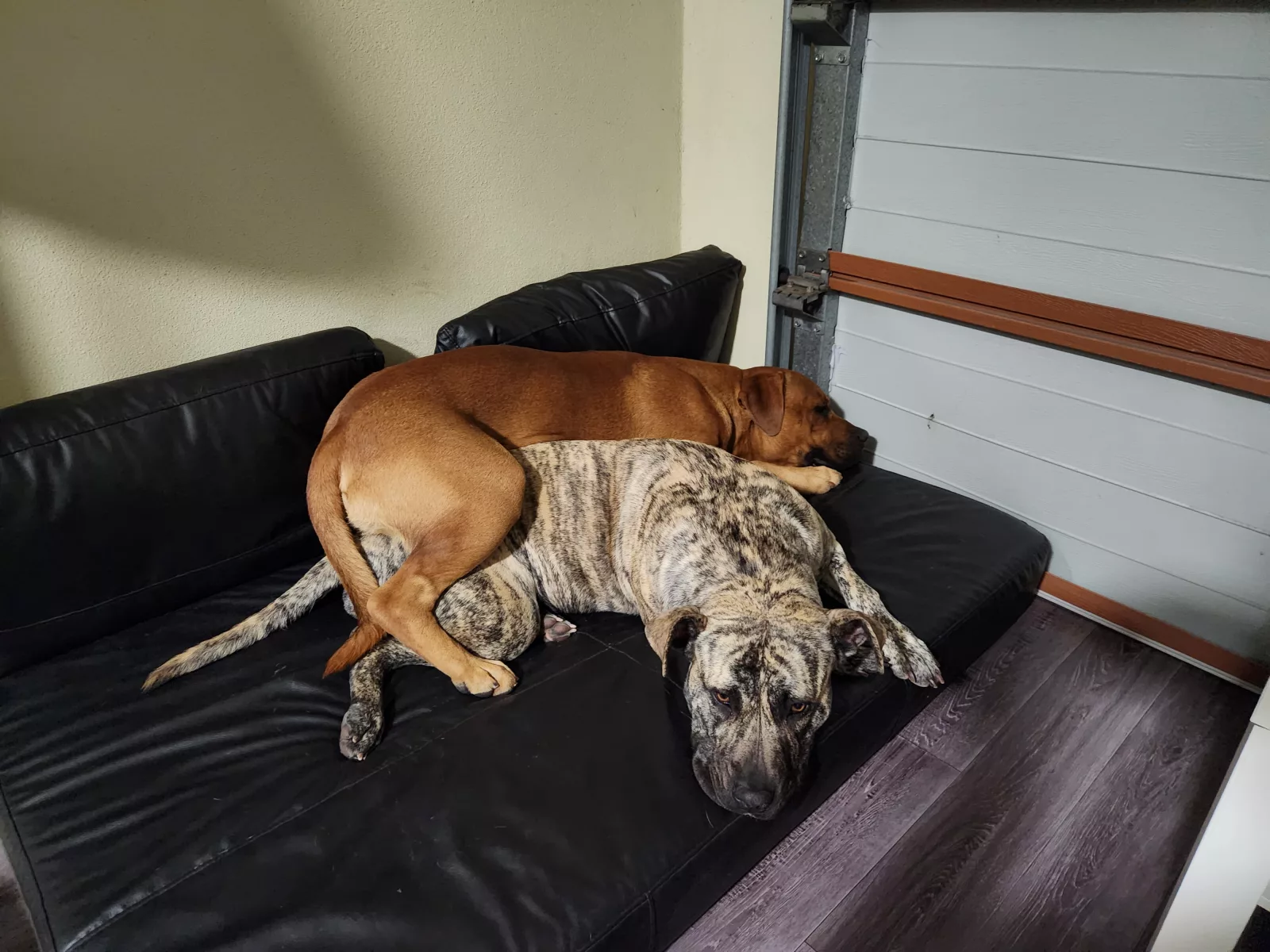 Dogs have access to: warm bedding, water at all times, ample space to exercise, natural light