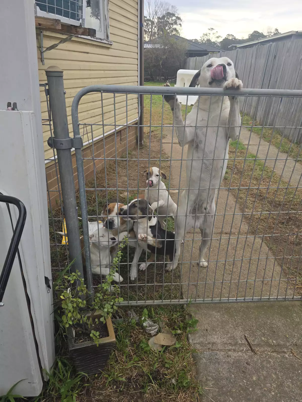 The dad is around 25% cross — his parents were Staffy and Staffy x Wolfhound — so these little ones are about 10% Wolfhound, which might make them a bit taller as they grow. They’re playful, affectionate, and love attention. Perfect for families or anyone wanting a loyal, energetic companion ready to settle into their forever home.