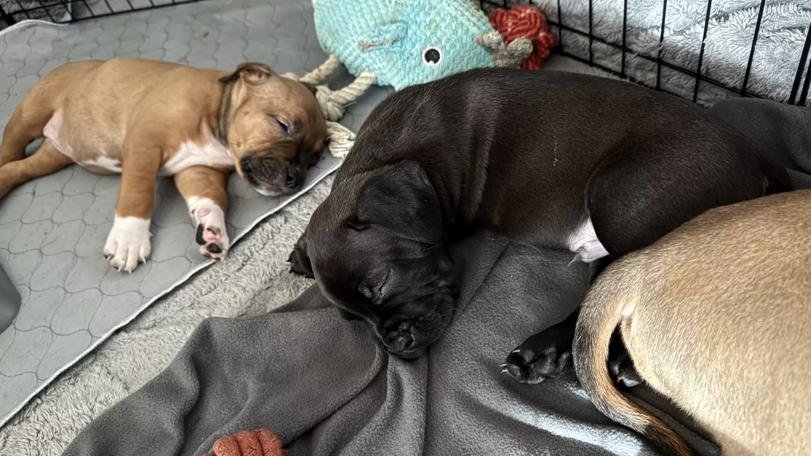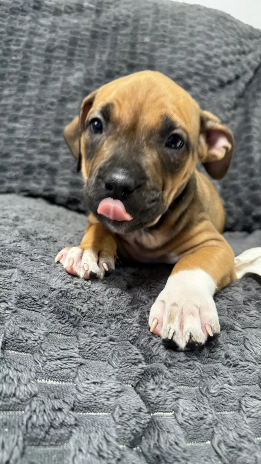 One male (pending sale) and one female 12-week-old American Staffy x Bullmastiffs ready to find their forever homes. They are playful, loving puppies. They have had their C3 and C5 vaccinations, microchipped, dewormed and have had flea/tick treatment. Please message me for more details or to arrange for you to meet them.