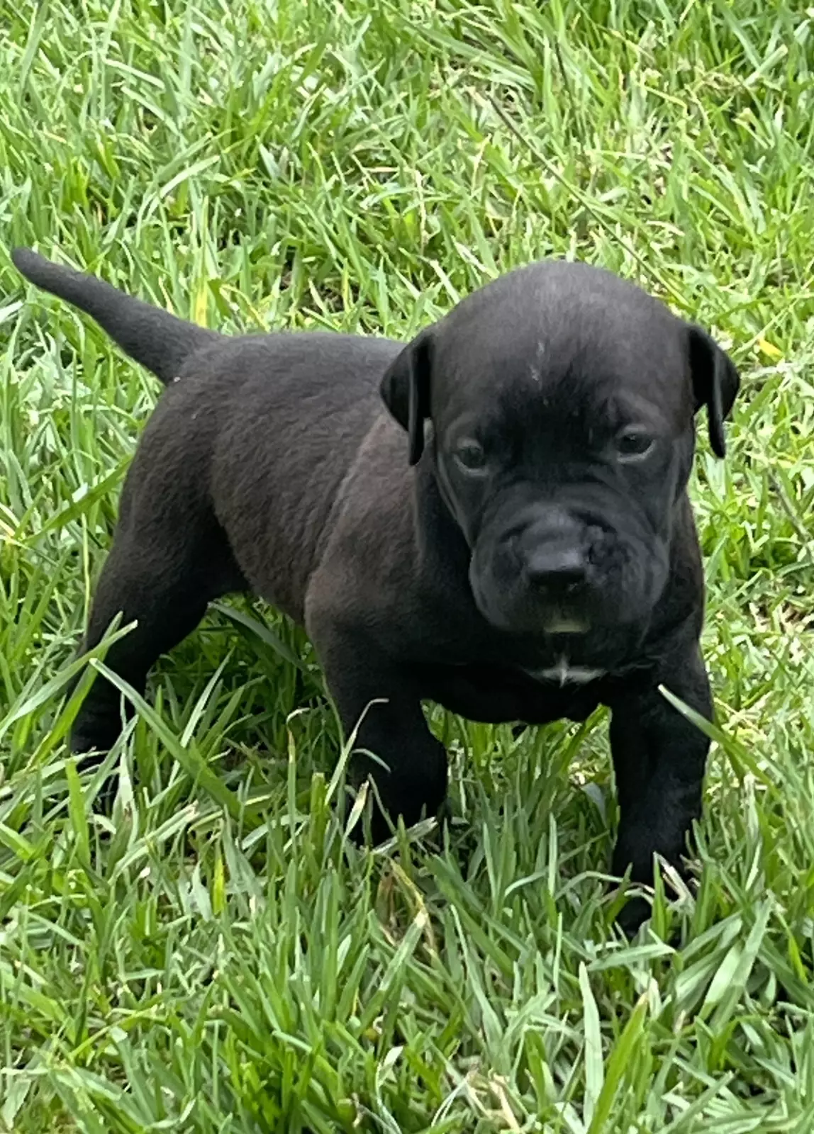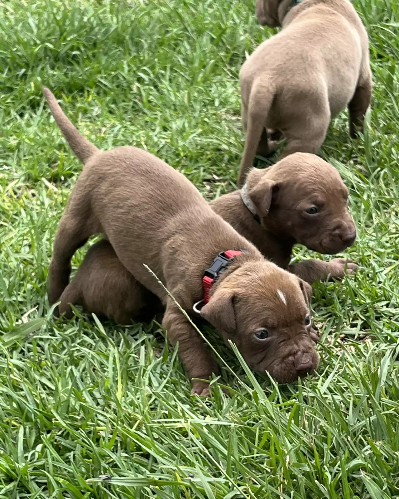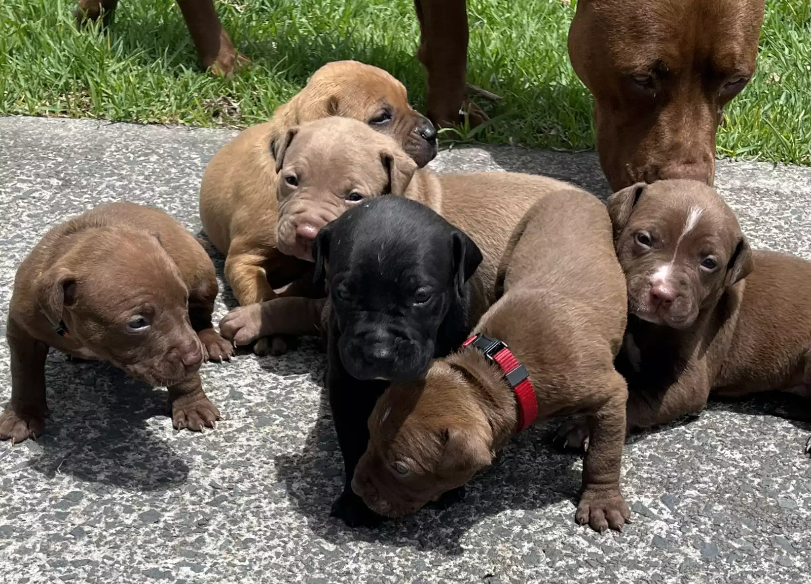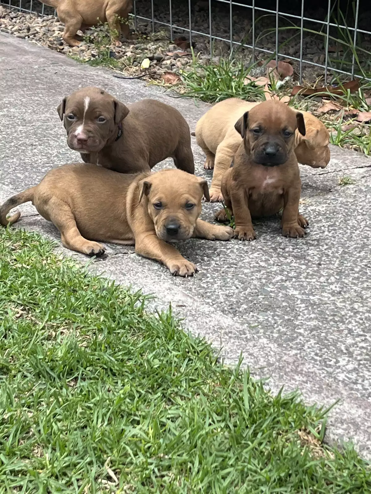 14 purebred Am Staff pups. 7 boys and 7 girls. Born 25th October ready to go to their new homes from 20th December. Microchipped, wormed and tick / flea treated and will be vaccinated and vet checked at 6 weeks (<4 weeks currently).