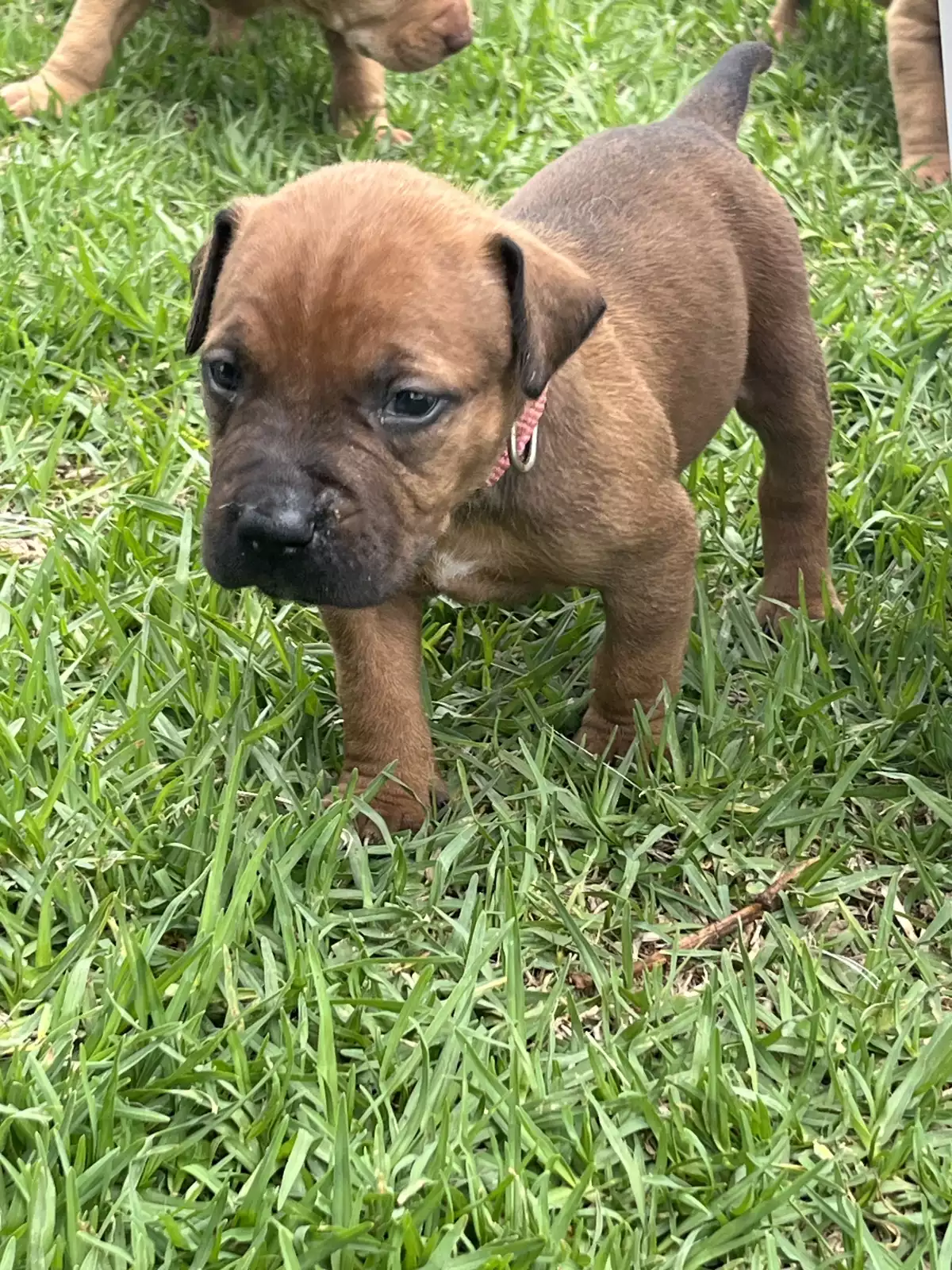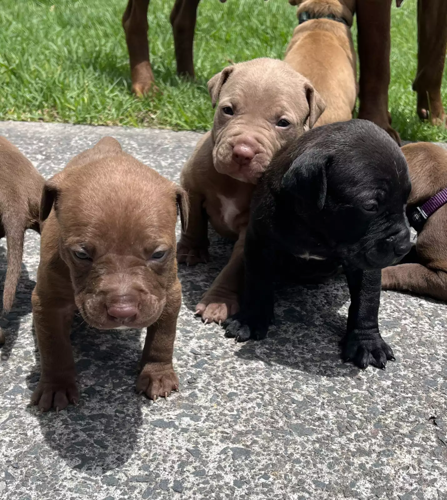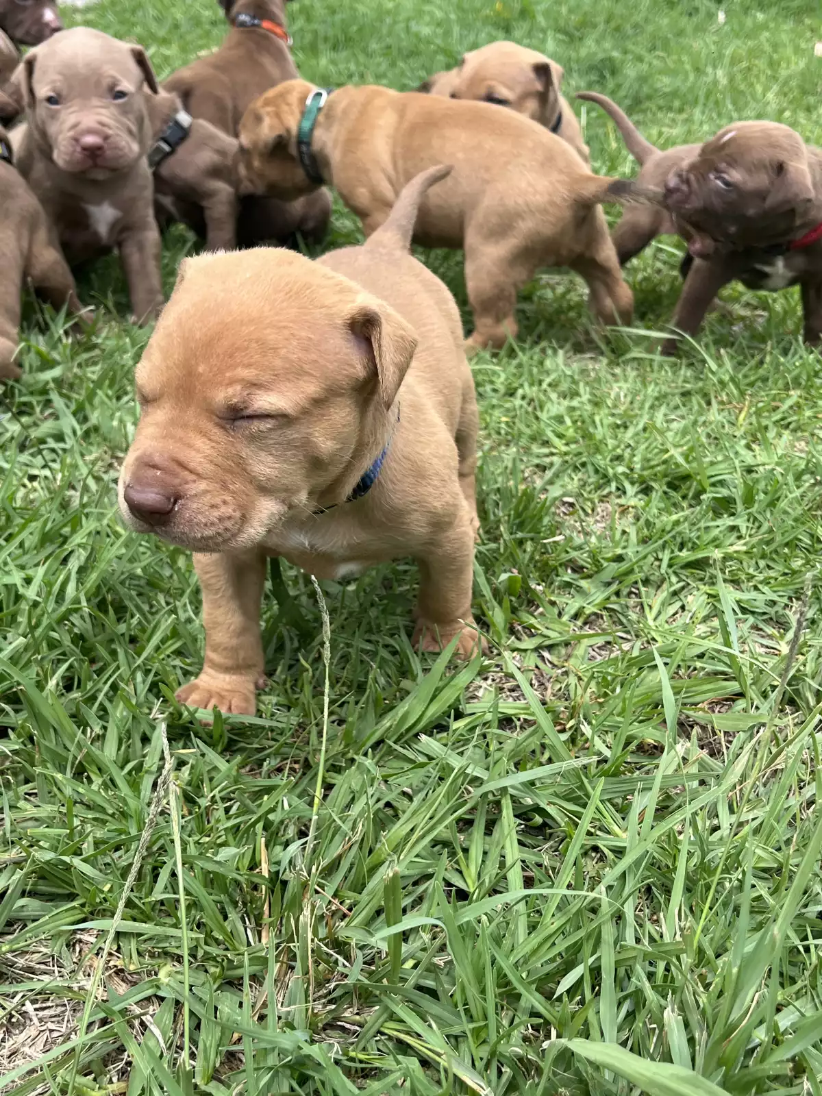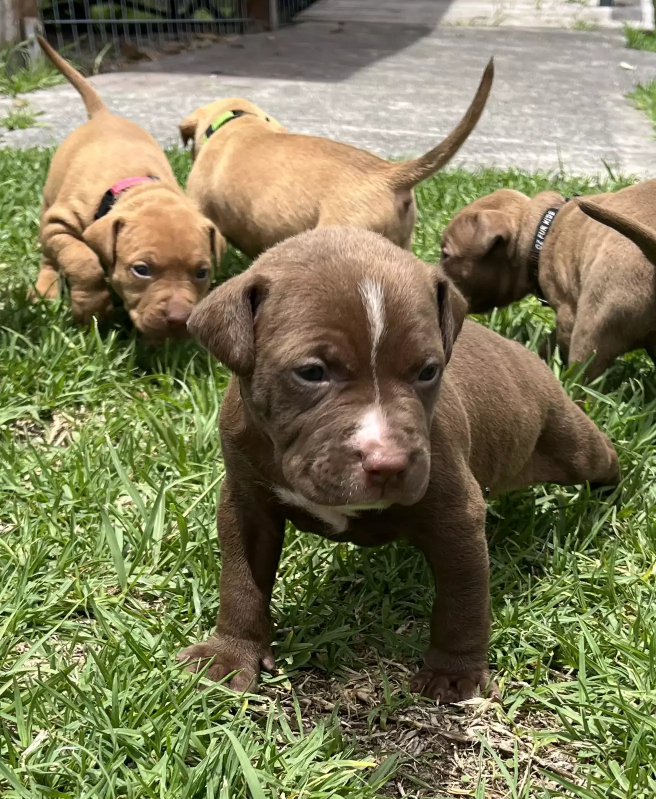 14 purebred Am Staff pups. 7 boys and 7 girls. Born 25th October ready to go to their new homes from 20th December. Microchipped, wormed and tick / flea treated and will be vaccinated and vet checked at 6 weeks (<4 weeks currently).