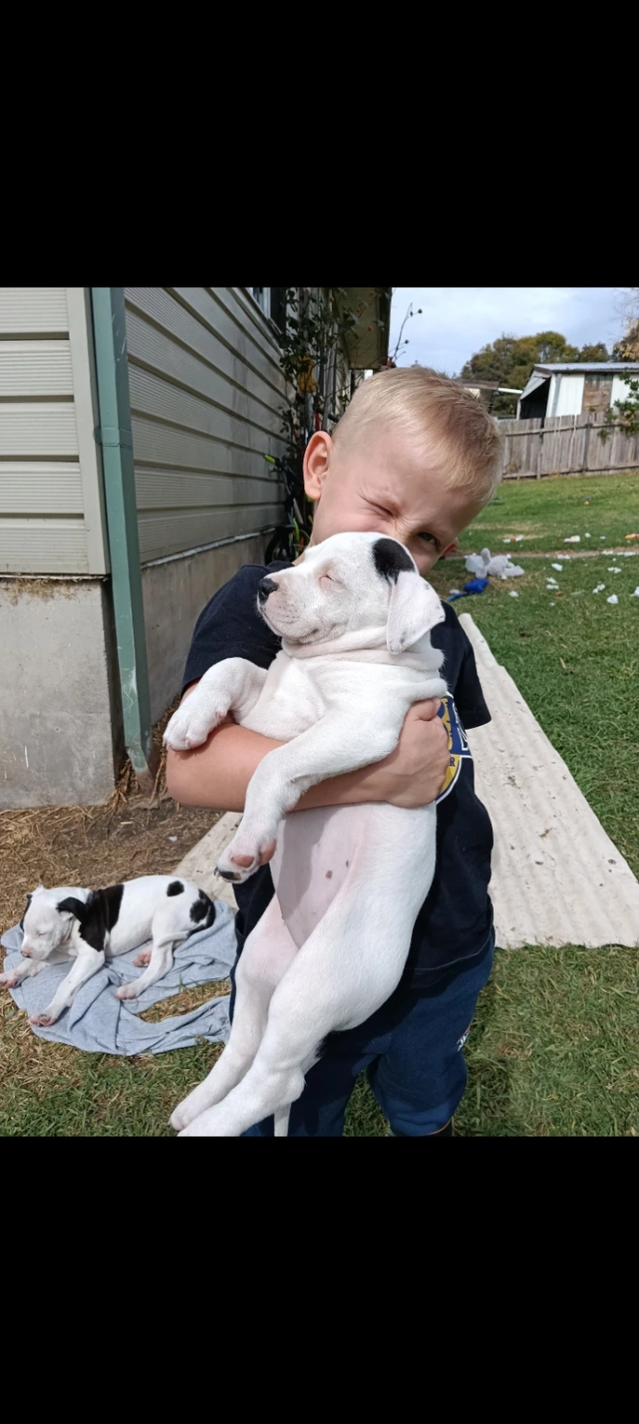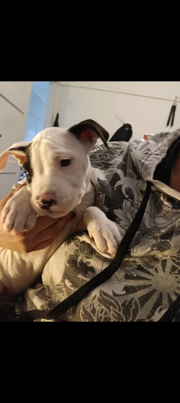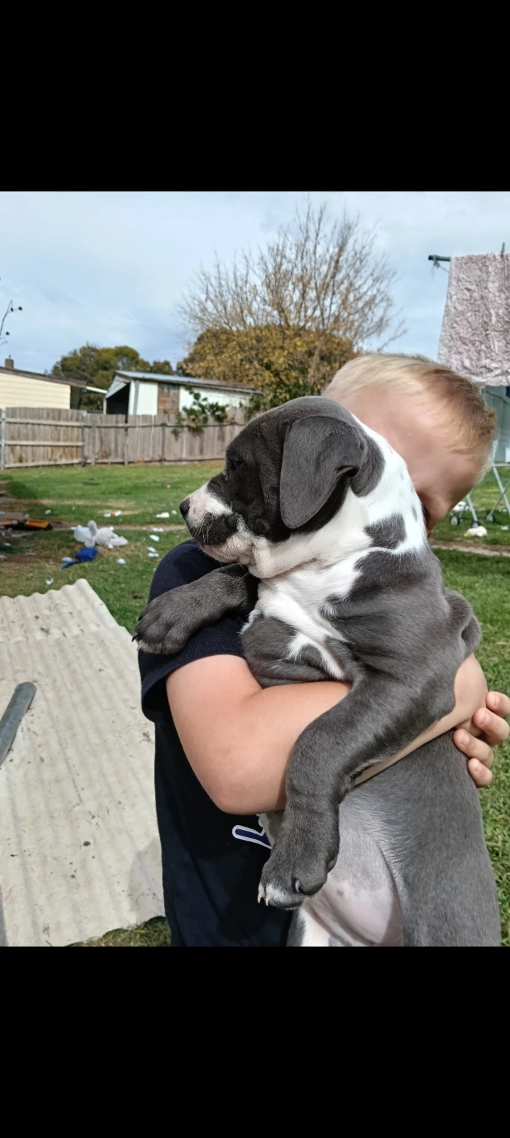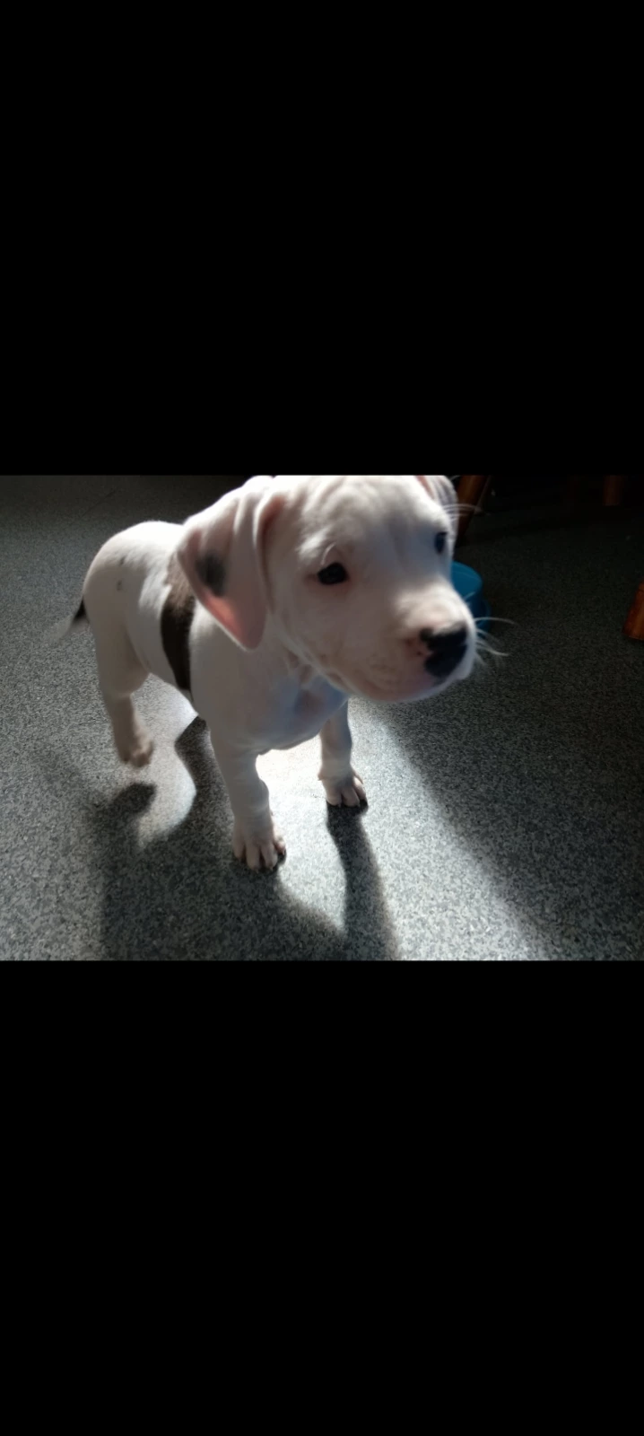 Hi, we have 6 gorgeous American Staffy pups, 4 male and 2 female, ready to find their forever homes.
