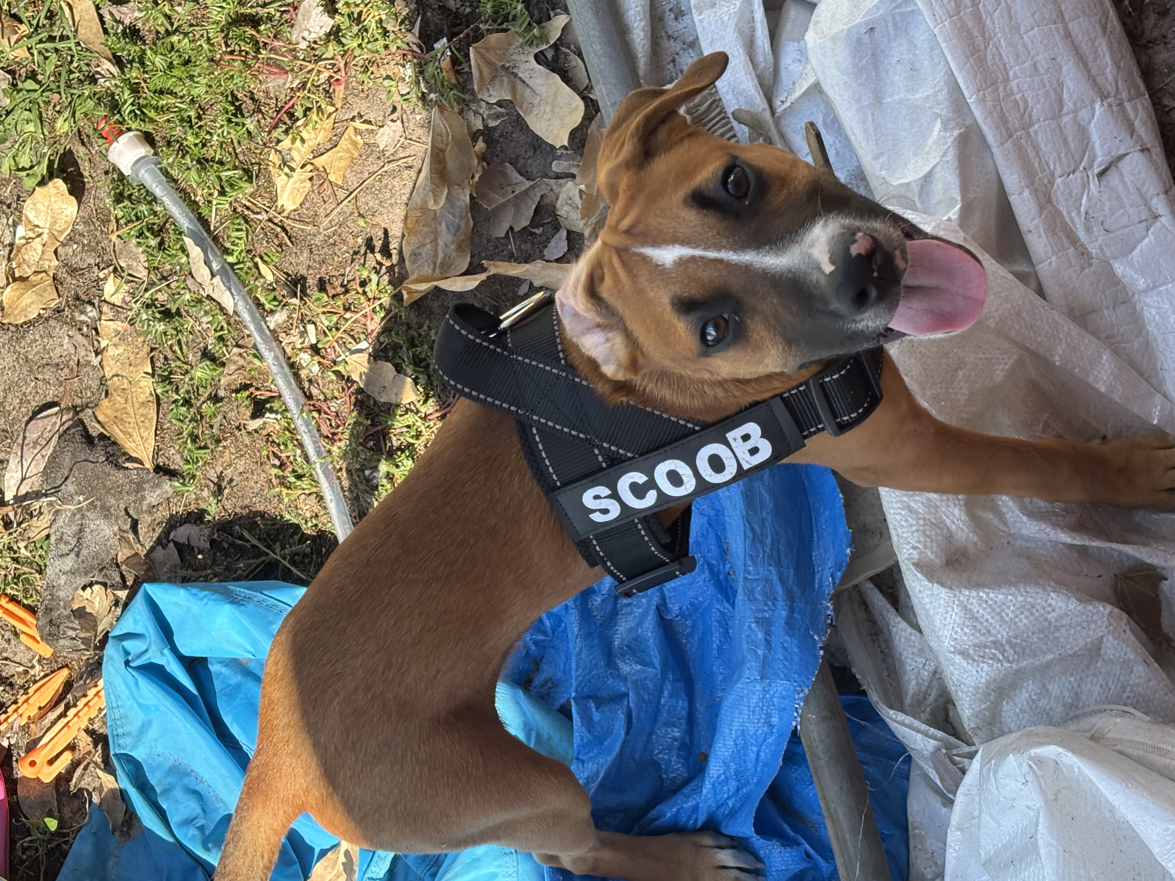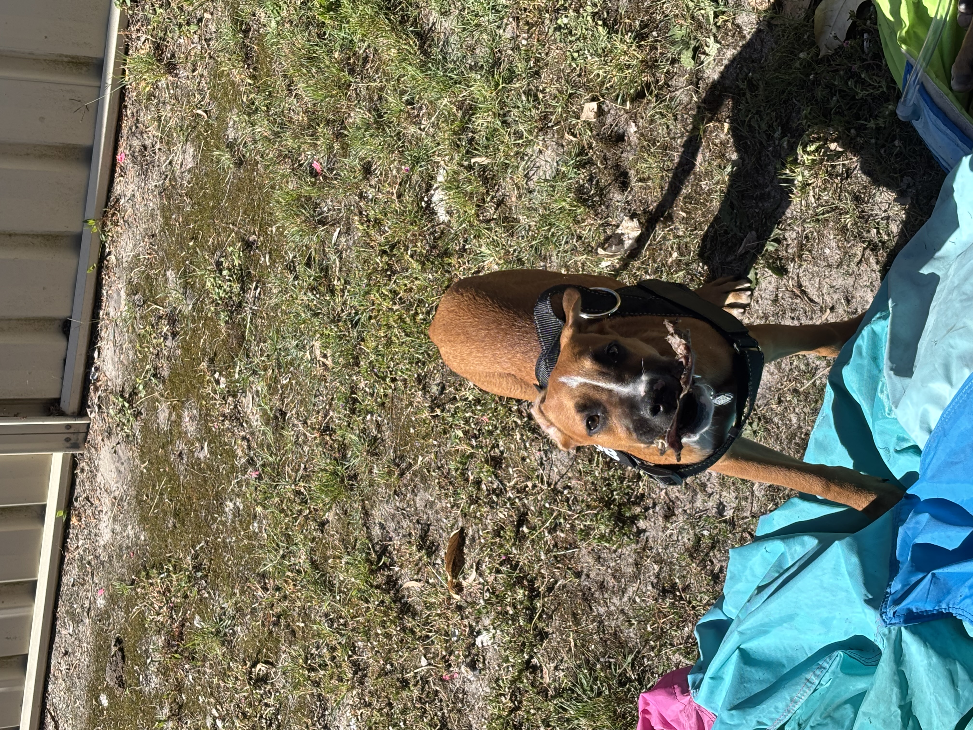 Staffy mix he has all needles done and microchip done vet checked worm & flee treated comes with harness, leash, crate (in middle of being crate trained).