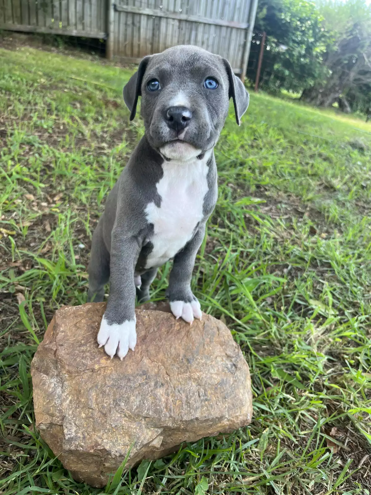 We have a stunning litter of purebred blue and white American Staffy pups, all healthy, playful, and ready to find their forever homes.