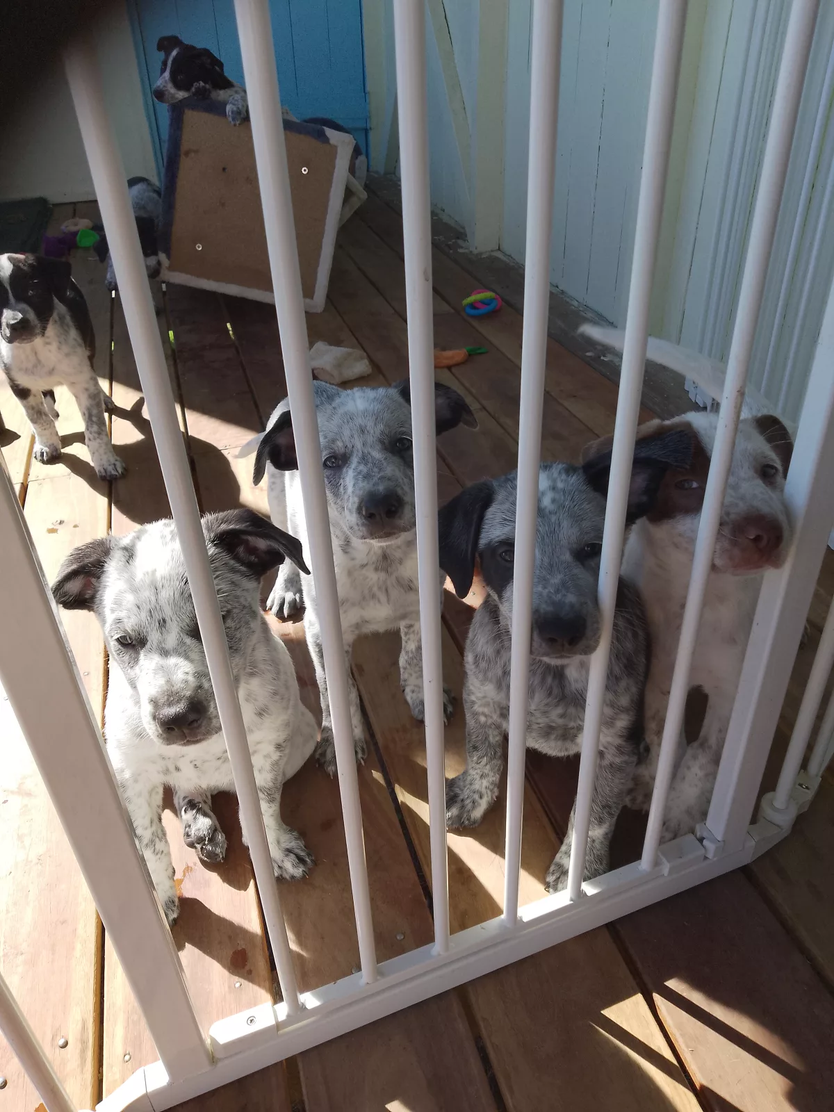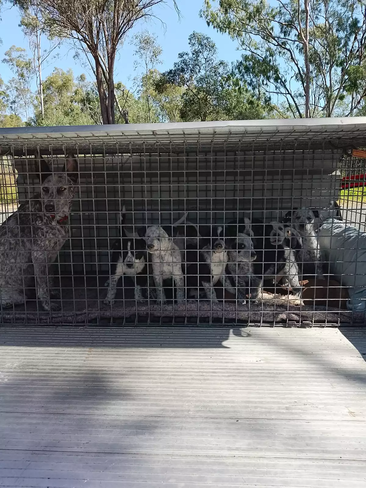 I am selling 8 cattle X Kelpie puppies they have all been vet checked vaccinated and microchipped they will come with there certificates of vaccination and vet checked. They are very active dog's they have a warm bed inside our home beside the fire for warmth.they go outside of a day time on our veranda at the moment keeping them of the ground to prevent any infection from bug's they have run around time as well. They are all eating well drinking water and milk very well.