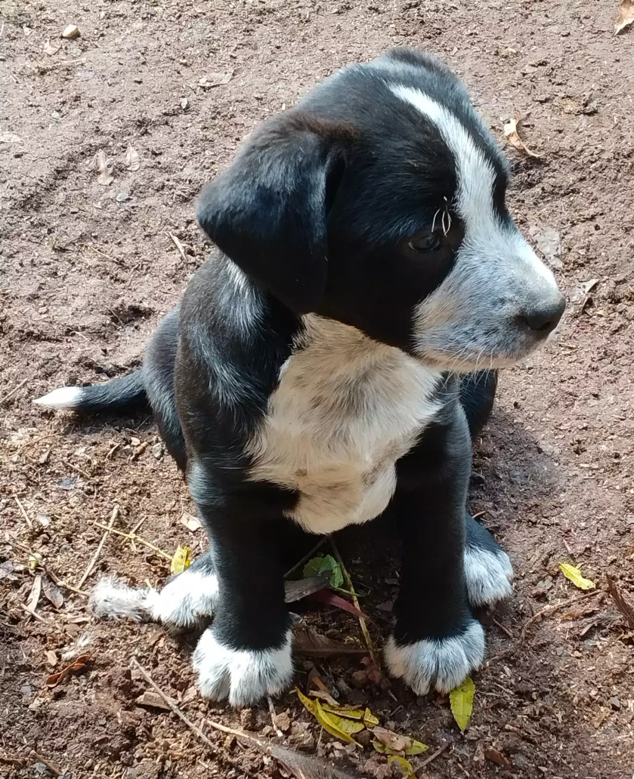 Blue Heeler cattle dog x Aussie bull dog pups. Pups are black with white markings, one female and two males. They are vet checked, microchipped, vaccinated & wormed and are eight weeks old. Parents good temperament.