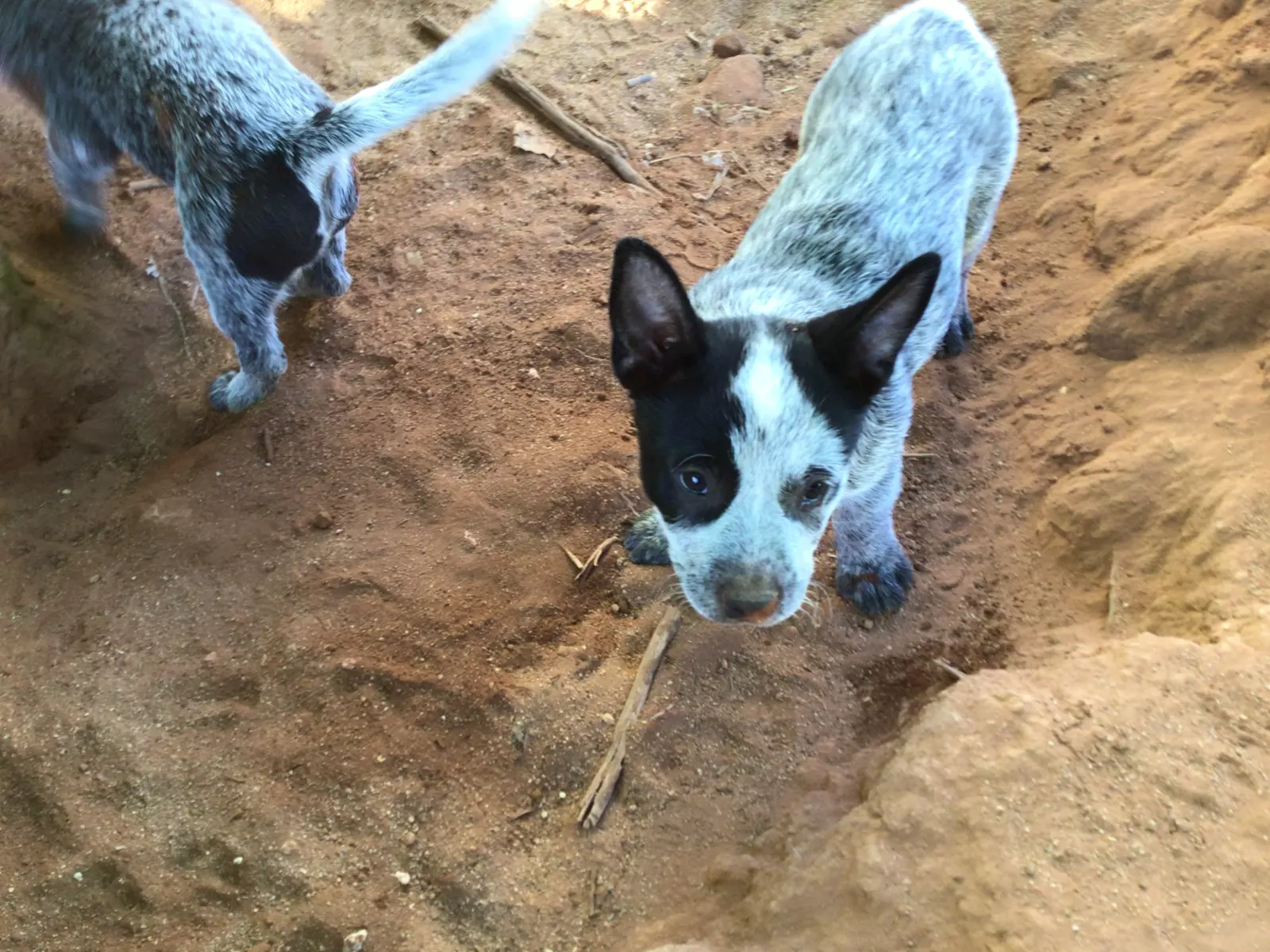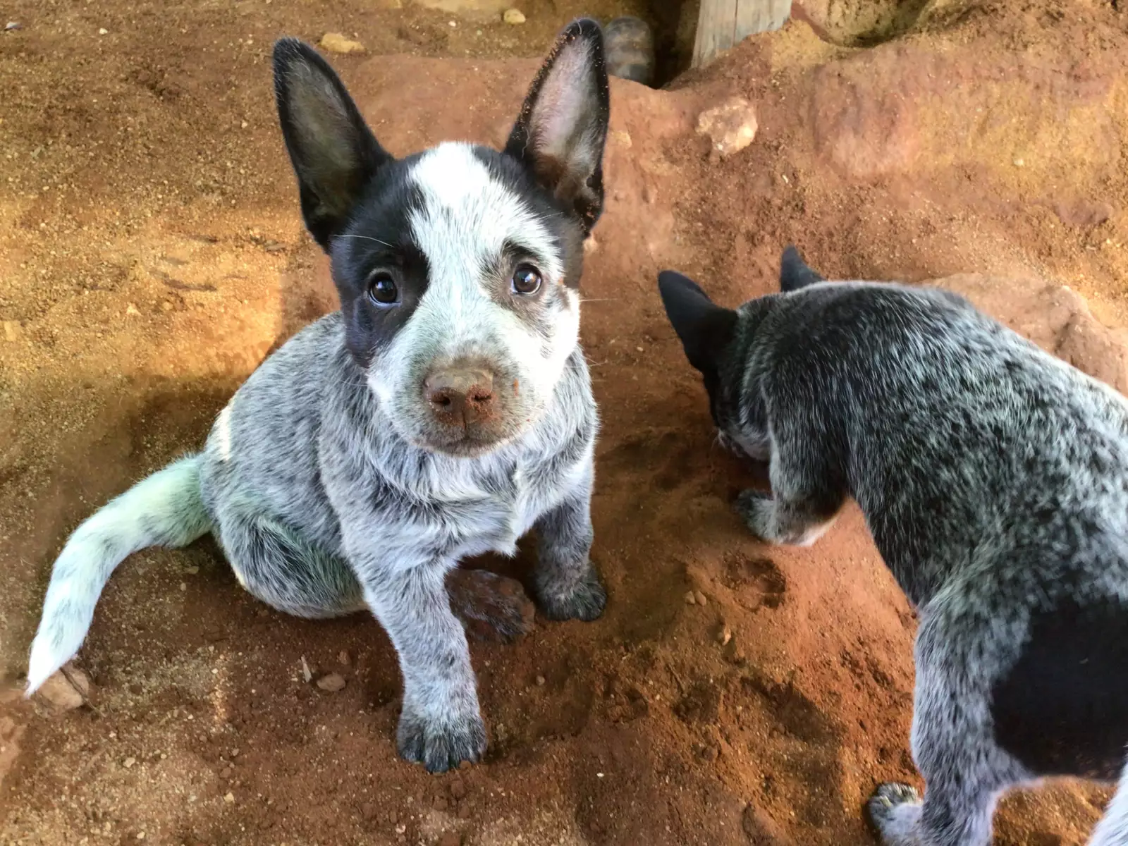 These two nine-week-old male Blue Heelers are looking for their special forever homes. Monty is a handsome pup with a distinctive black mask, a white strip down his forehead, and a beautifully mottled body. He possesses a lovely personality, showing a great passion for play and a keen interest in learning new skills while staying close to people.