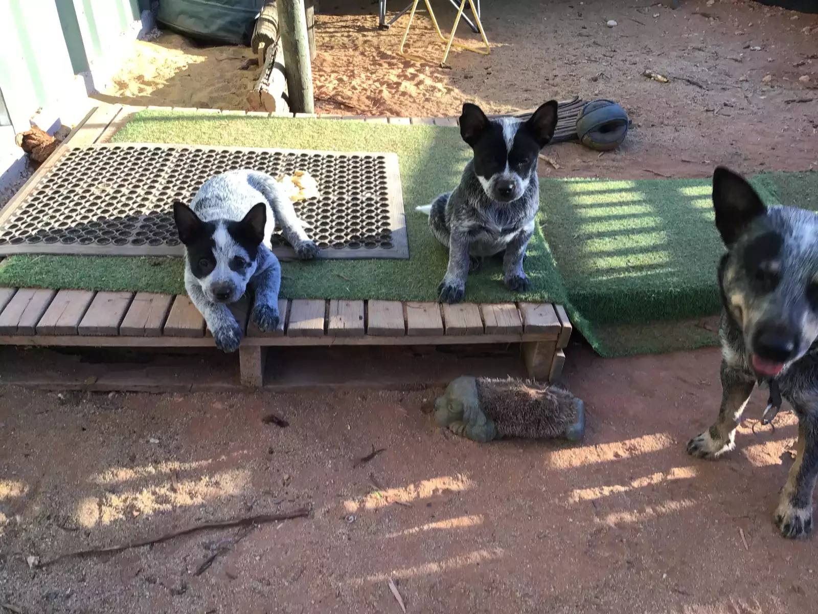 Dogs have access to: warm bedding, water at all times, ample space to exercise, natural light