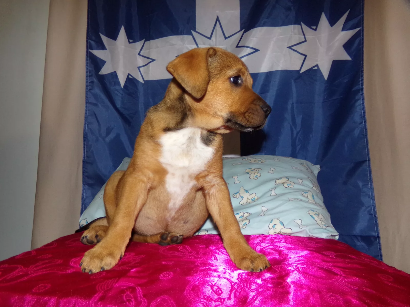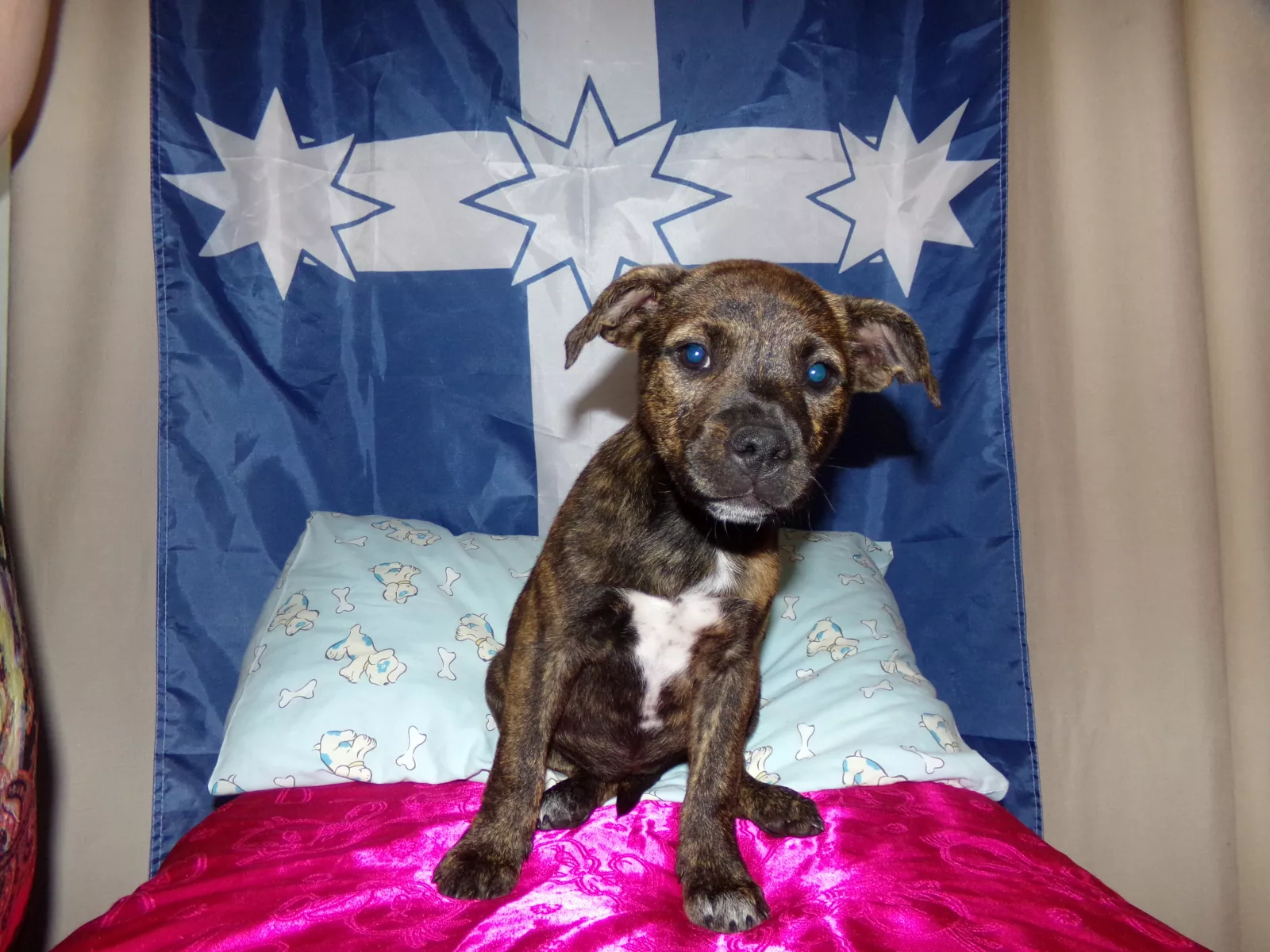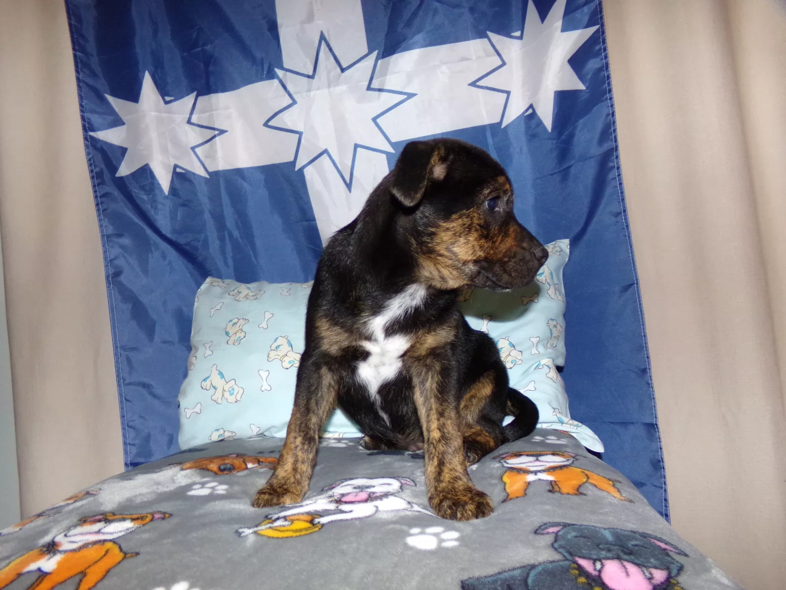 4 Female and 1 Male red heeler x staffy. Raised in a loving Family with kids interacting with them everyday. Our pups have been fed premium puppy food and are raised with thier Mum and Dad. They have been microchipped , vaccinated and wormed every two weeks. They have a friendly playful temperament and have had ample space to play and learn in an indoor and outdoor environment.