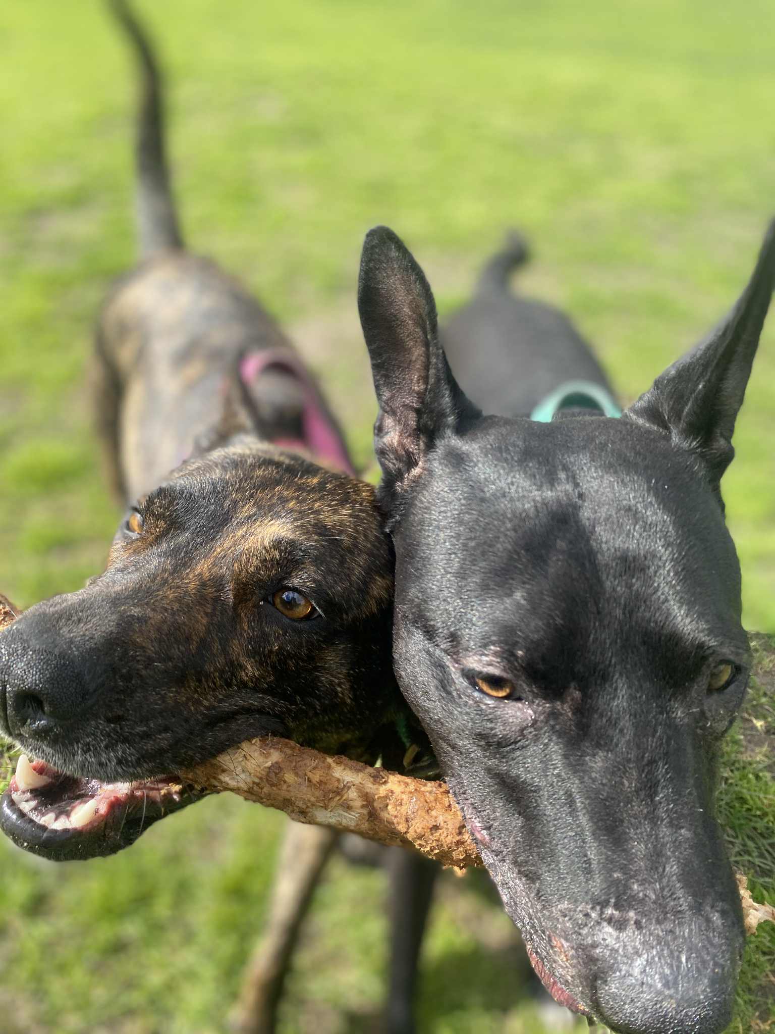 These two dogs come as a pair as we believe they are mother and son and are beautifully bonded and play bitey face so well.
