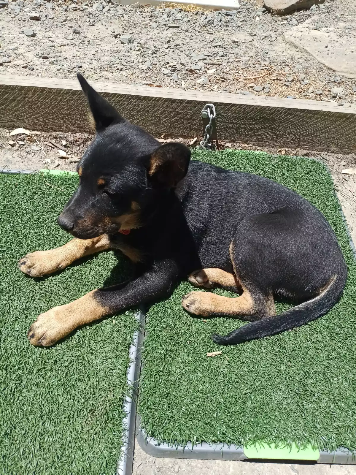 Black & Tan Male – the Alpha Black & Green collar, please refer to the following link for a video & more information on his gorgeous personality.