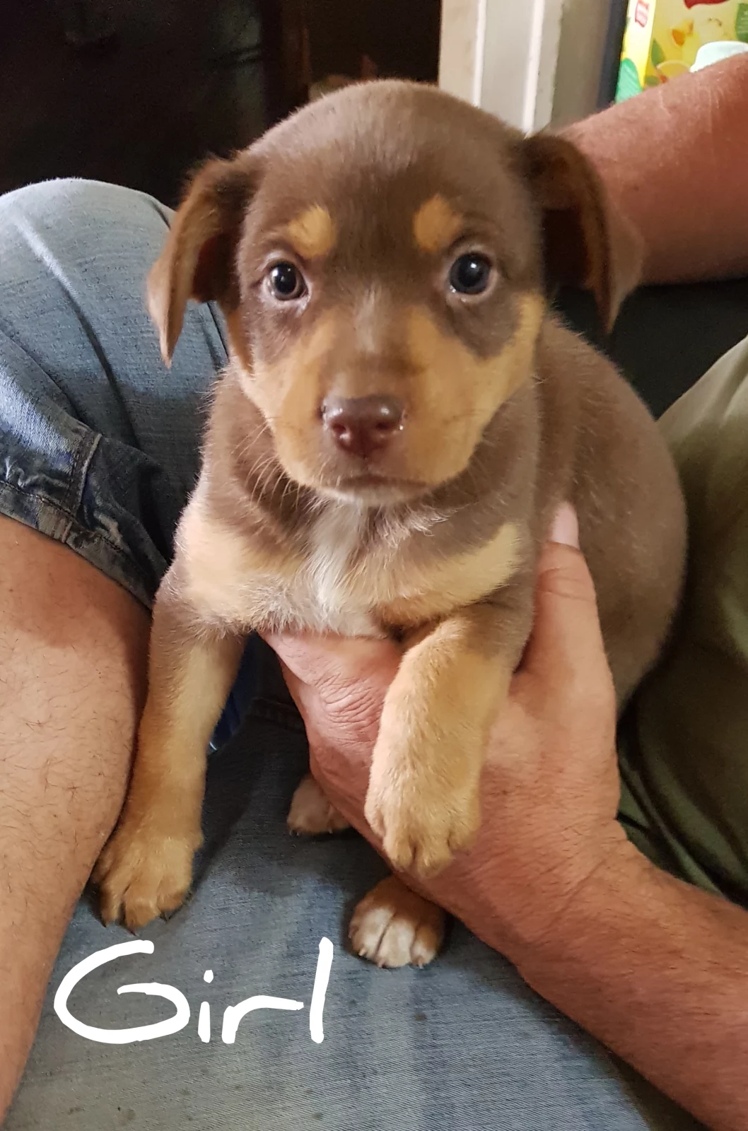 Although our puppies look purebred, they're 99.94% Kelpie and 0.06% border Collie due to our grandma Dam that's mostly Kelpie with a bit of Border Collie. She's very intelligent and affectionate.