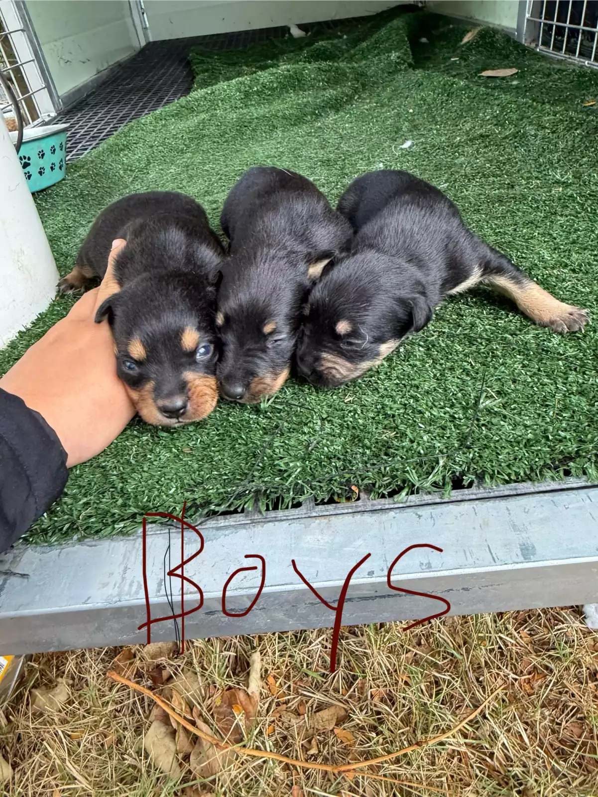 Dogs have access to: warm bedding, water at all times, ample space to exercise, natural light