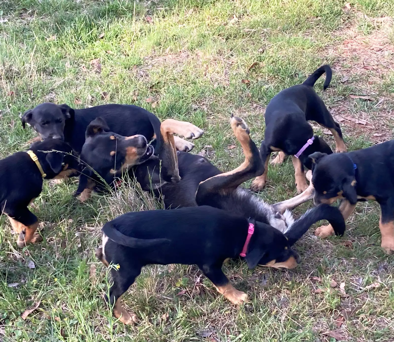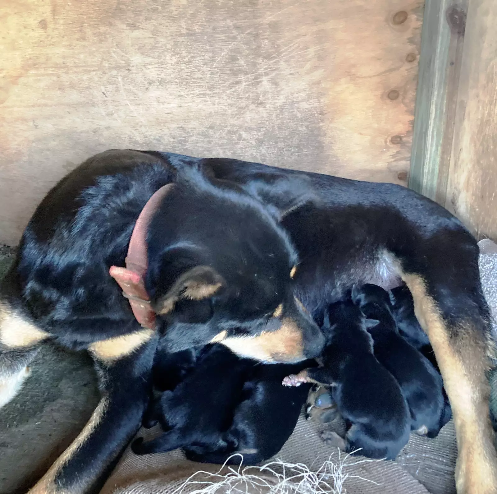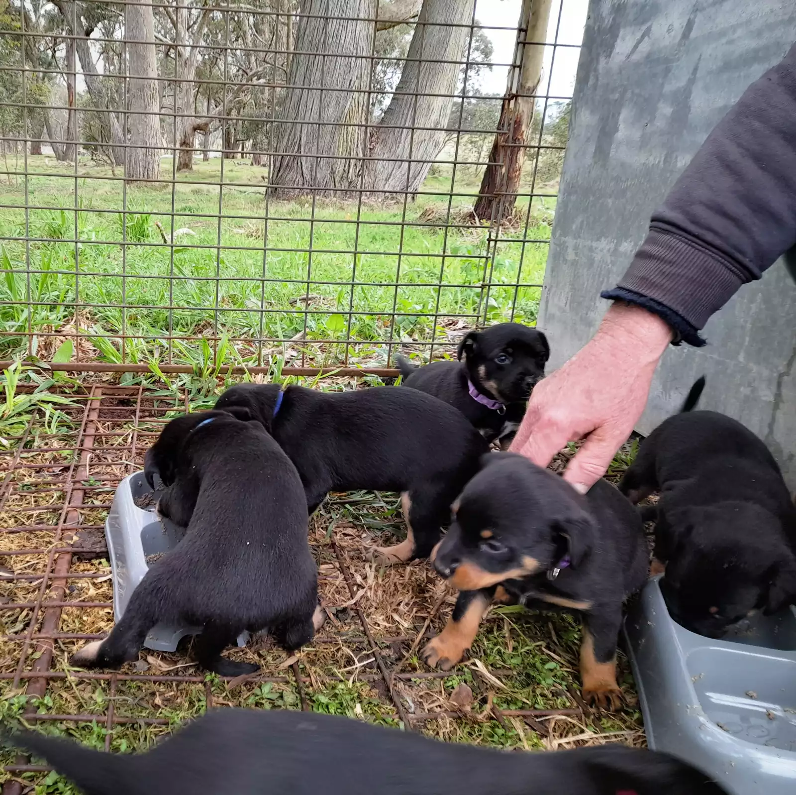 A sweet surprise litter of black & tan Kelpie X pups, born 2 September 2024.